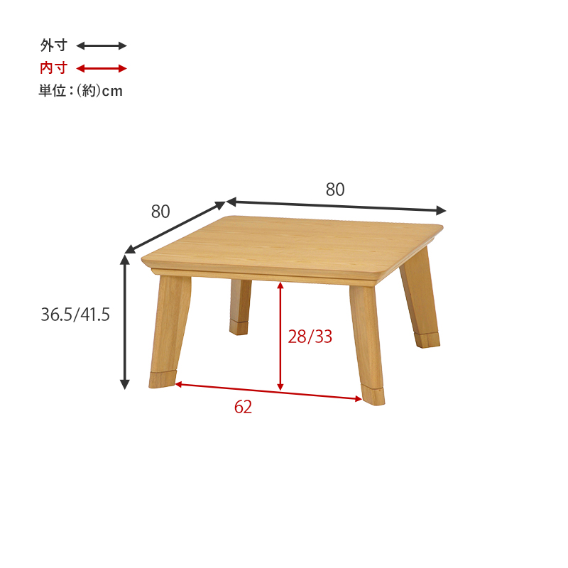 | サイズ | (約)幅80×奥行80×高さ36.5(継脚時41.5)cm |