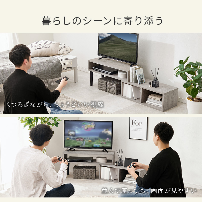 お部屋に合わせて自由にスタイルを変更できるTVボード。オープンタイプなので配線がしやすくディスプレイ棚としても使用可能。