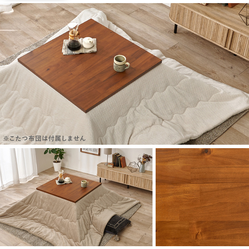 天然木アカシアの集成材突板を使用し、味のある風合いを楽しめるこたつテーブル。