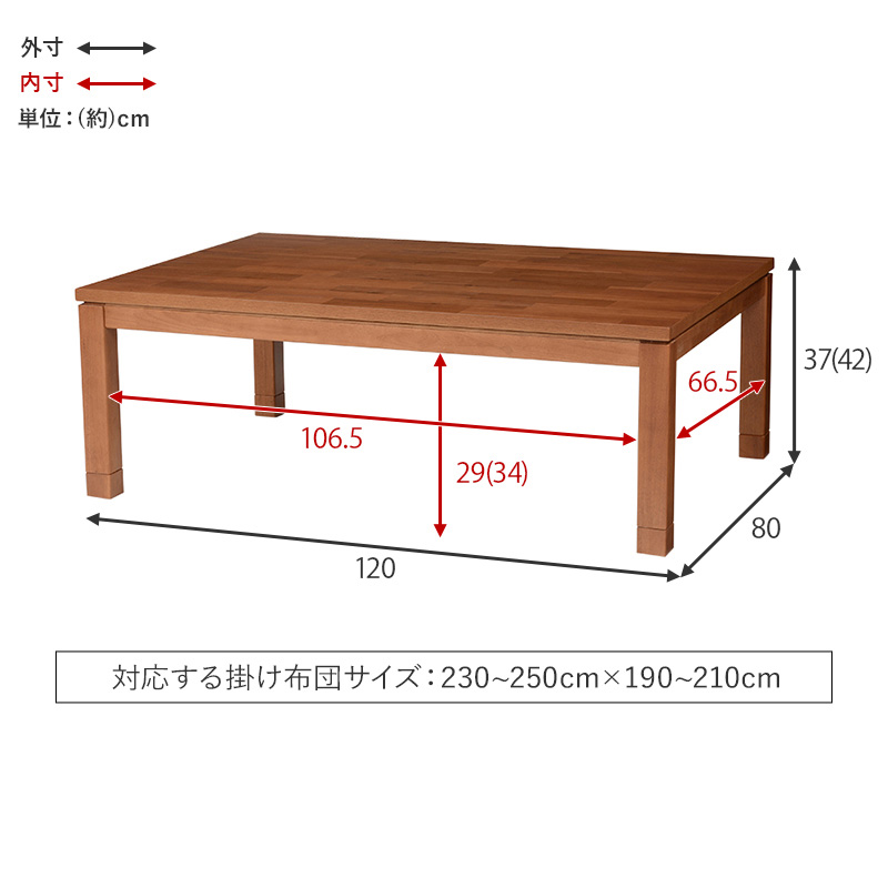 | サイズ | (約)幅120×奥行80×高さ37/42cm |