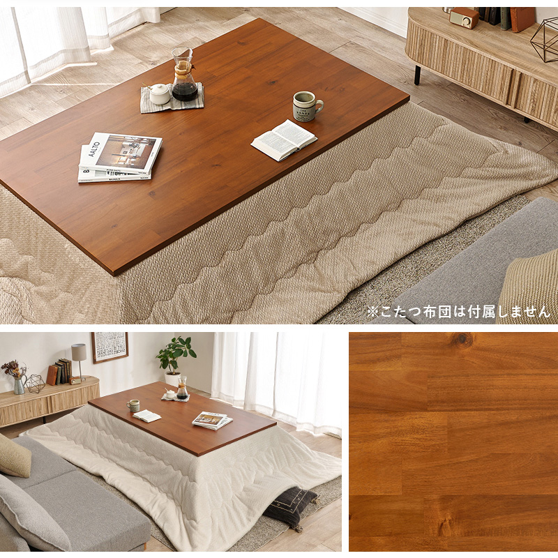 天然木アカシアの集成材突板を使用し、味のある風合いを楽しめるこたつテーブル。