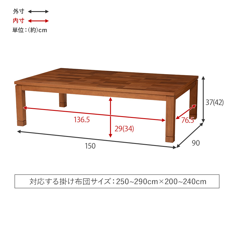 | サイズ | (約)幅150×奥行90×高さ37/42cm |