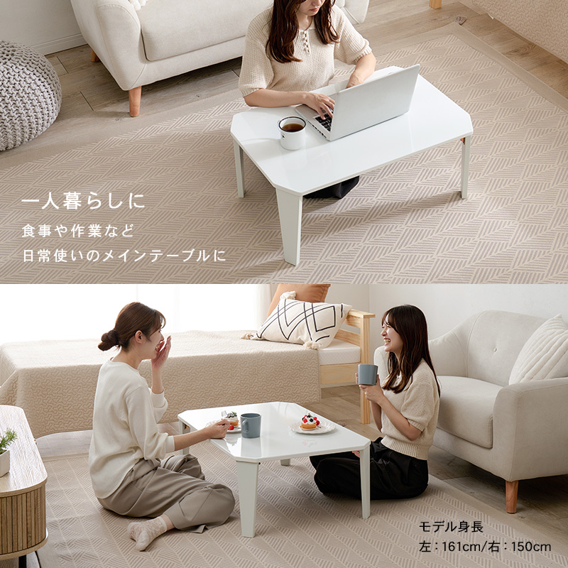 くすみカラーやモノトーンカラーが選べ、コンパクトサイズでワンルームや1人部屋にぴったり。省スペース収納可能な折れ脚タイプ