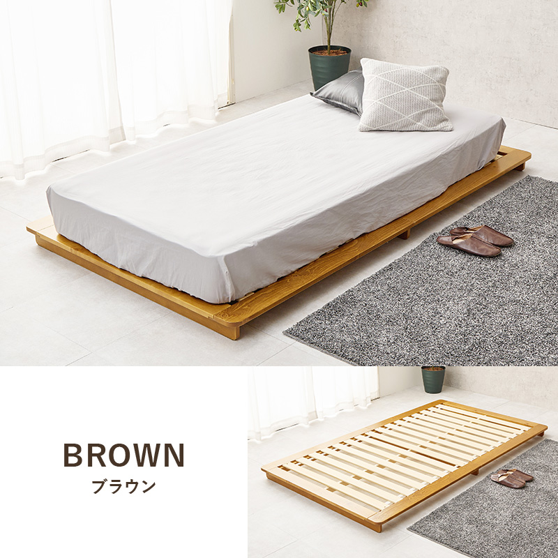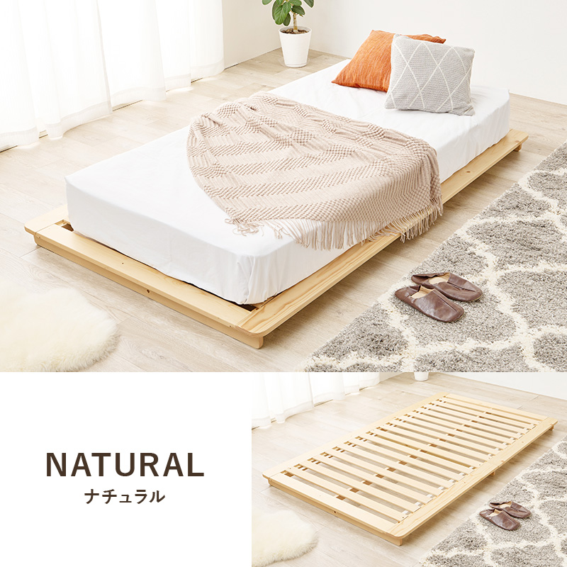マットレスに対して余裕のあるサイズ感のステージ型ローベッド。しっかりとした寝心地のボンネルコイルマットレスセット