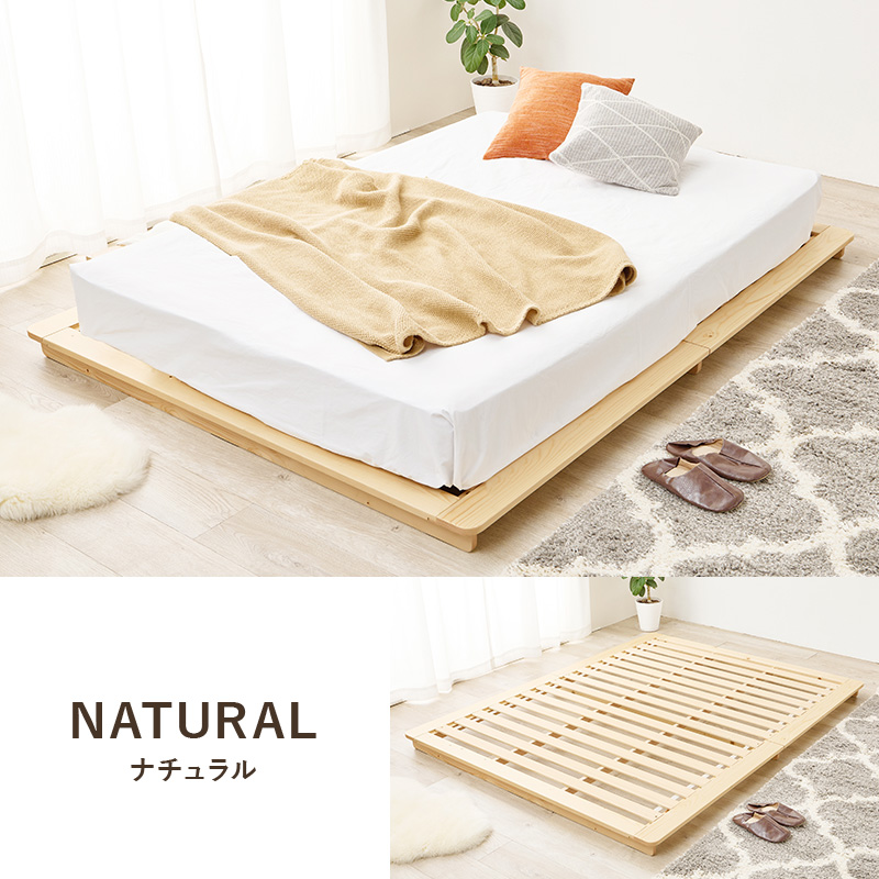 マットレスに対して余裕のあるサイズ感のステージ型ローベッド。しっかりとした寝心地のボンネルコイルマットレスセット
