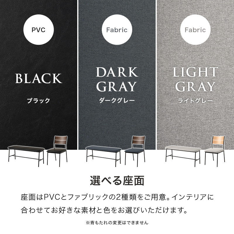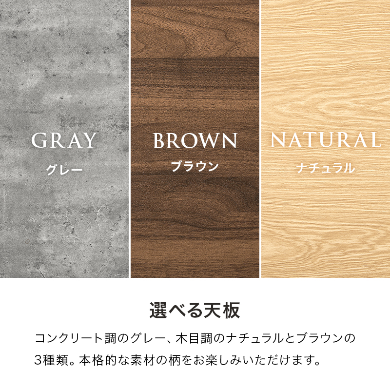 素材 | 天板:合成樹脂化粧繊維板(メラミン樹脂)、フレーム:スチール、張地:<ダークグレー><ライトグレー>ポリエステル・<ブラック>合成皮革 |