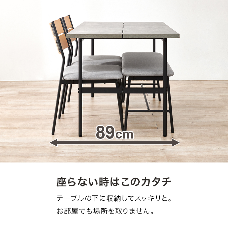 テーブル天板の中央にスリットを入れたスタイリッシュなデザインのダイニング4点セット。シンプルモダンなデザインがお部屋を垢ぬけた印象に。