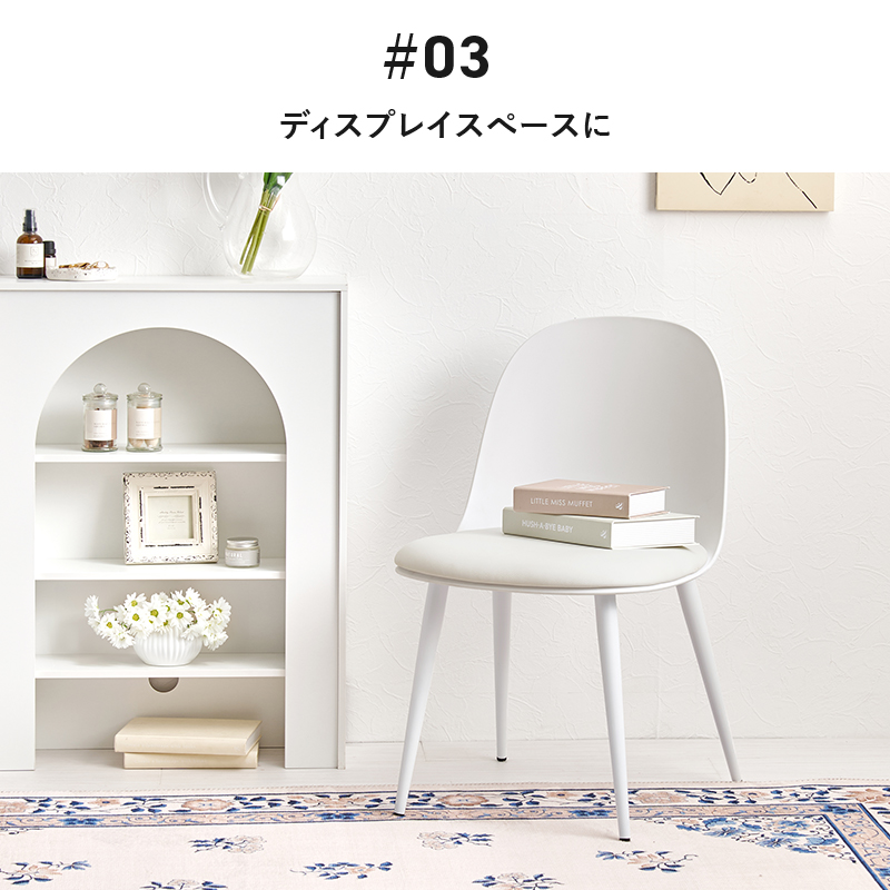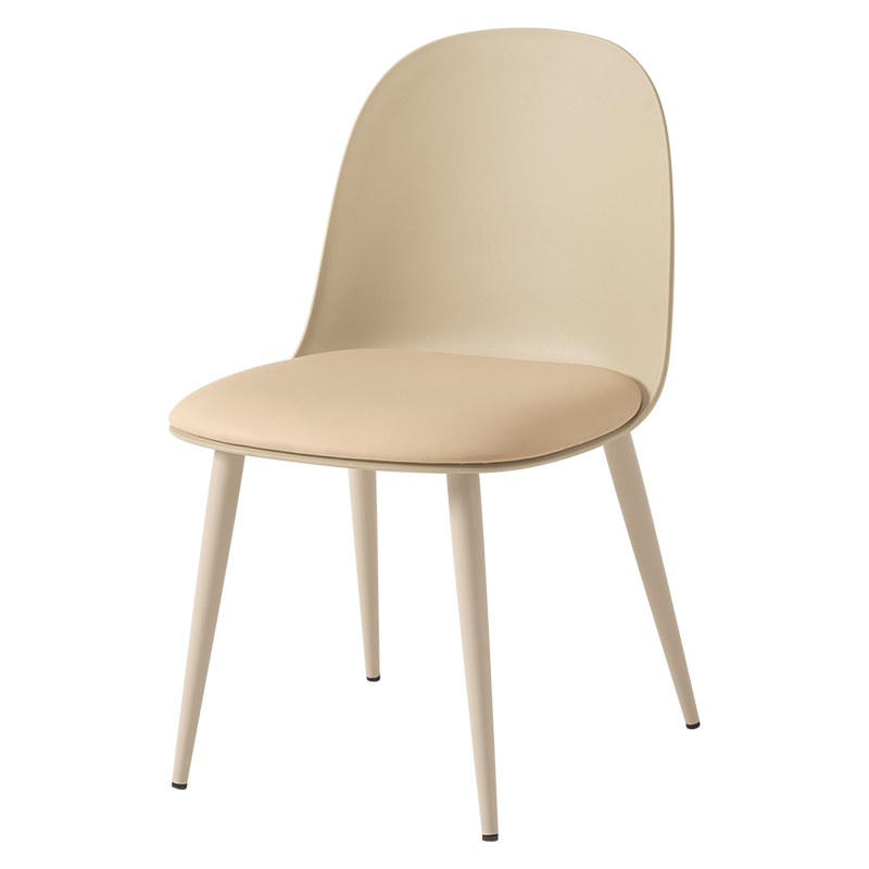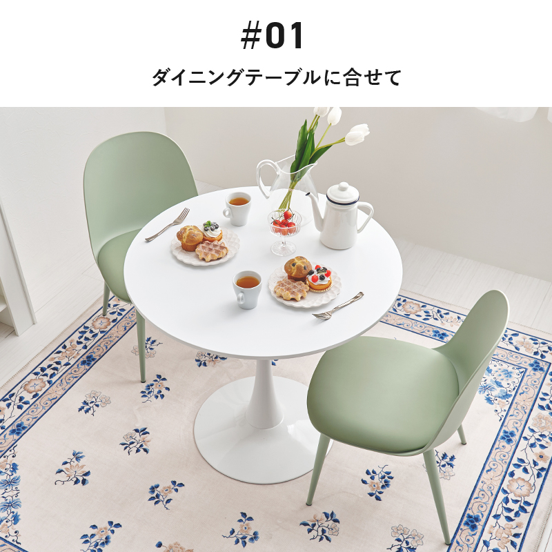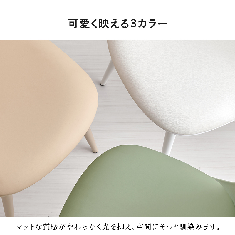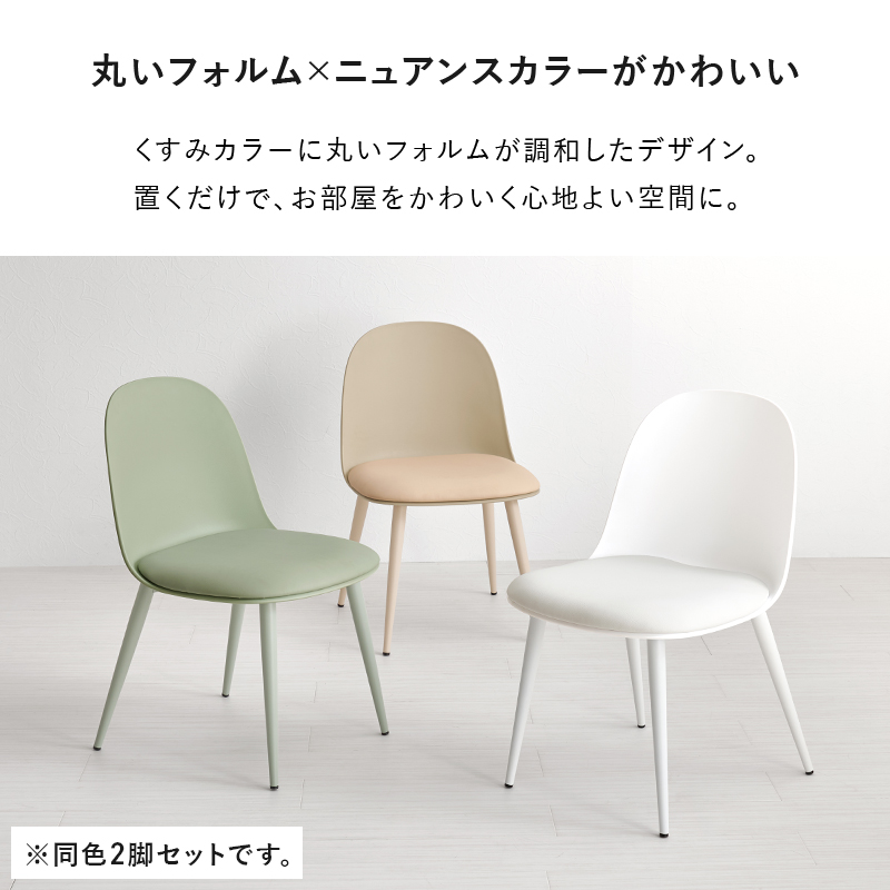 くすみカラーに丸いフォルムがかわいいデザイン。脚も座面に合う色でコーティングし、柔らかな雰囲気に仕上げています。