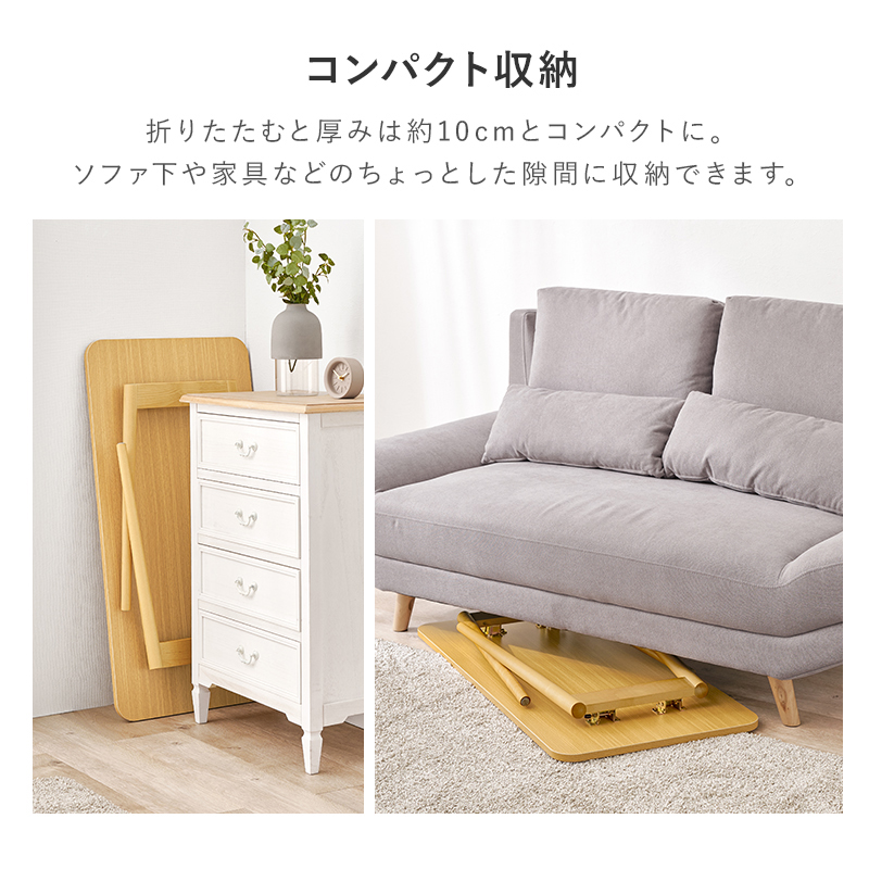 ソファに座ってのパソコン作業や読書にピッタリな高さ。作業スペースは確保しつつコンパクトに折りたためて移動や収納にも便利。