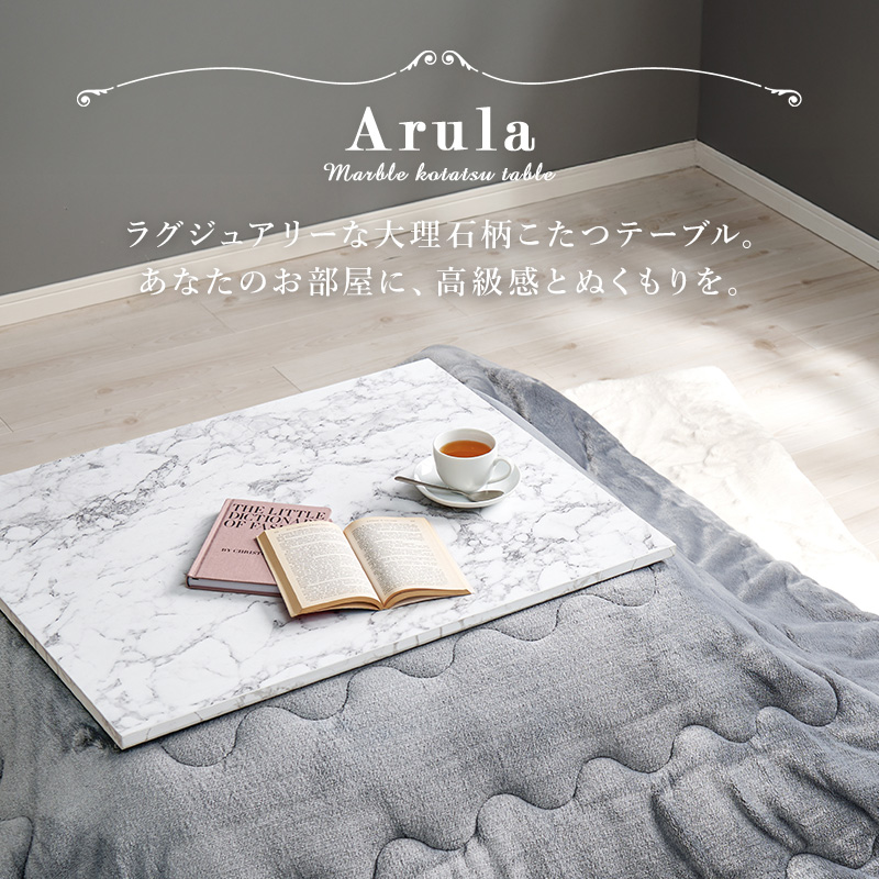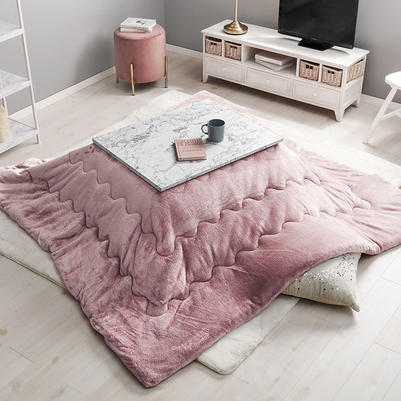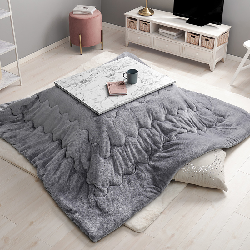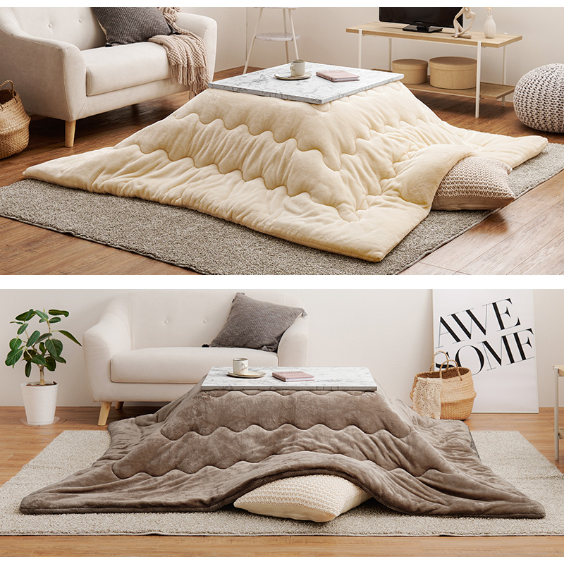 おしゃれで可愛い大理石柄のこたつテーブル。コンパクトでひとり暮らしのお部屋でも置きやすいサイズです。とろけるような肌触りのシンプルな掛け布団セット