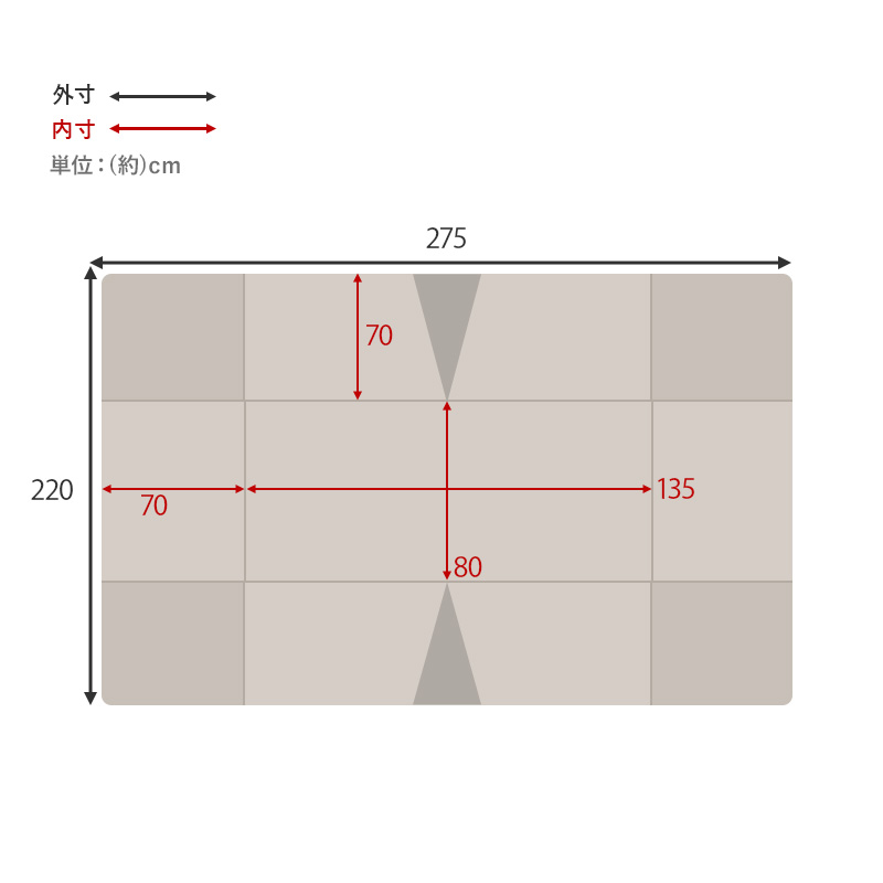 サイズ | (約)幅135×奥行80×高さ70cm |