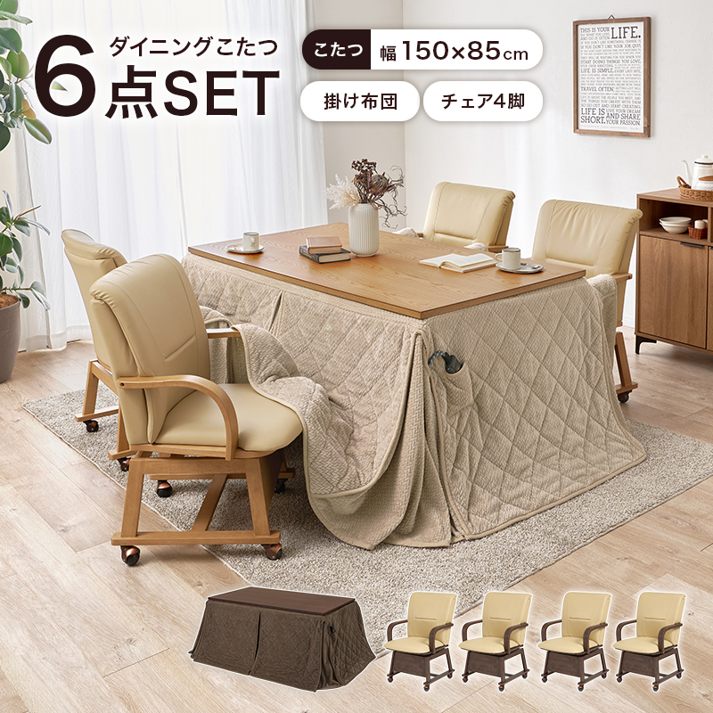 ダイニングコタツ6点セット シェルタK150Hポカ6S