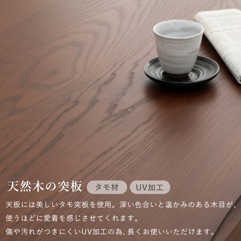 素材 | こたつ:<天板>天然木化粧繊維板(タモ突板・UV塗装)<脚部>ラバーウッド 、ヒーター:MHU-601E(D) 600Wハロゲン薄型温風ヒーター(手元コントローラー)、ふとん:< 側地><中材>ポリエステル100%、チェア:<フレーム>天然木<張地>合成皮革 |