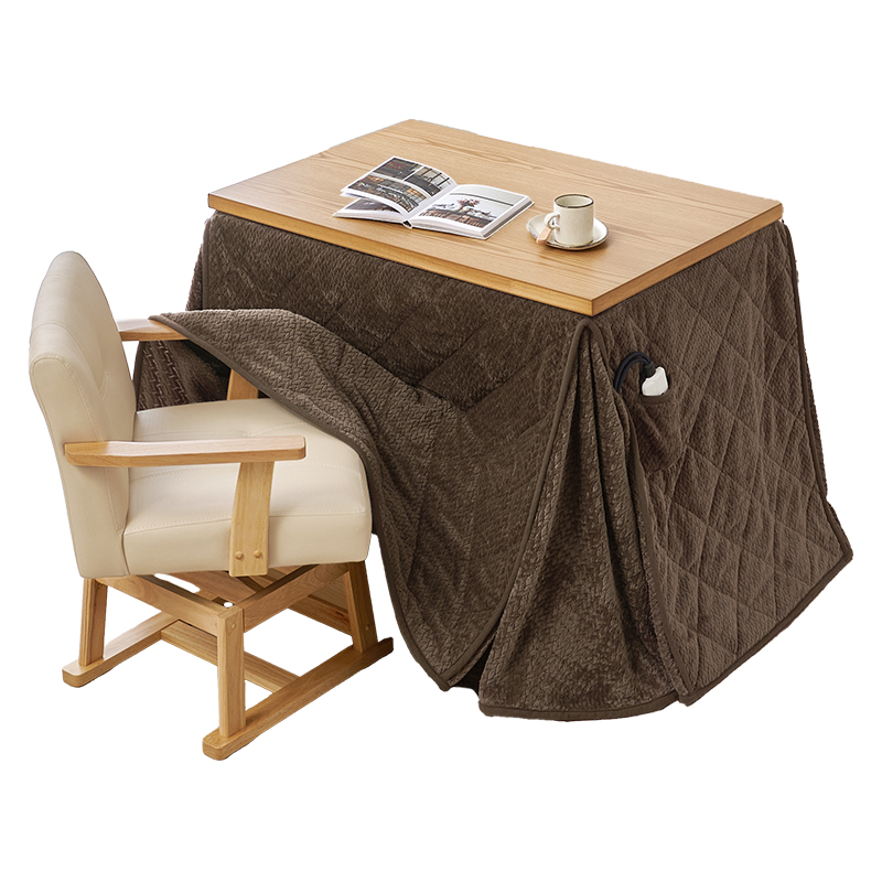 素材 | こたつ:<天板>天然木化粧繊維板・UV塗装<脚部>ラバーウッド、ヒーター:MHU-601E(D) 600Wハロゲンヒーター(手元コントローラー付)、ふとん:< 側地><中材>ポリエステル100%、チェア:<木部>ラバーウッド<張地>合成皮革 |