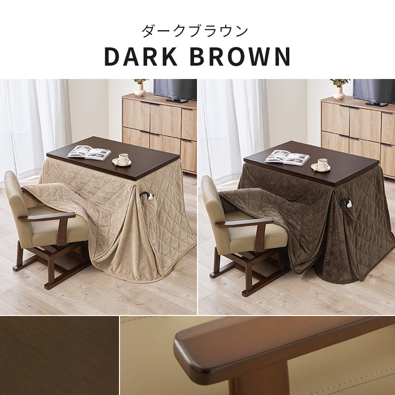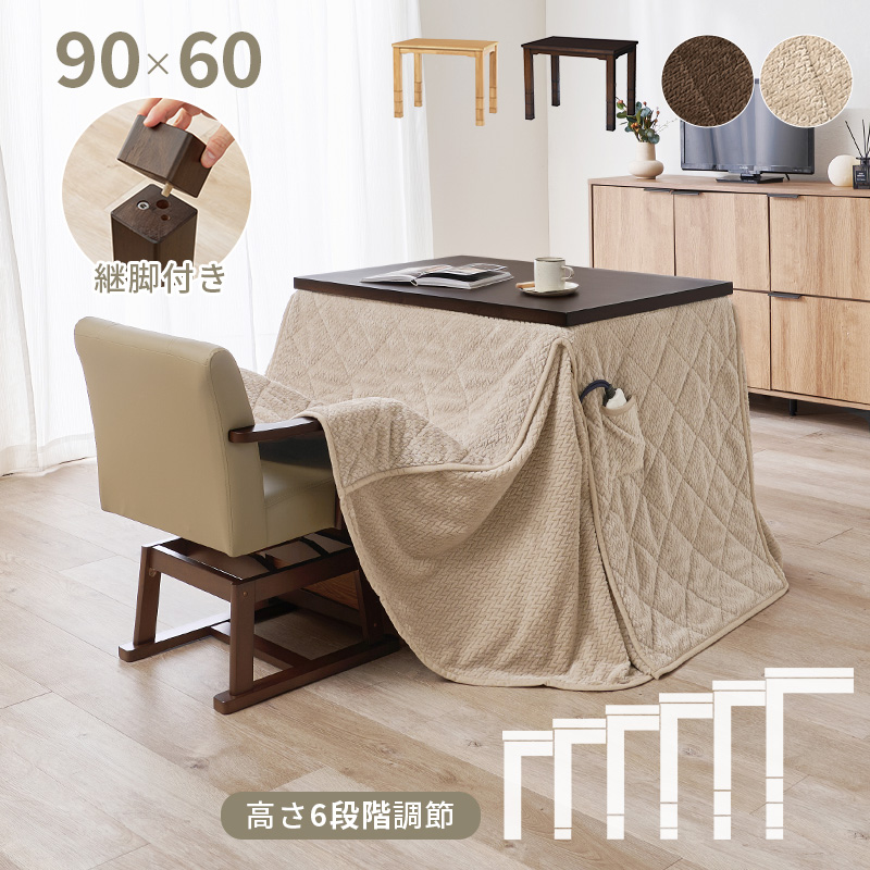 サイズ | こたつ:(約)幅90×奥行60×高さ45/50/55/60/65/70cm、ふとん:(約)幅90×奥行60×高さ70cm、チェア:(約)幅56×奥行54×高さ73.5/68.5×座面高40.5/35.5cm |
