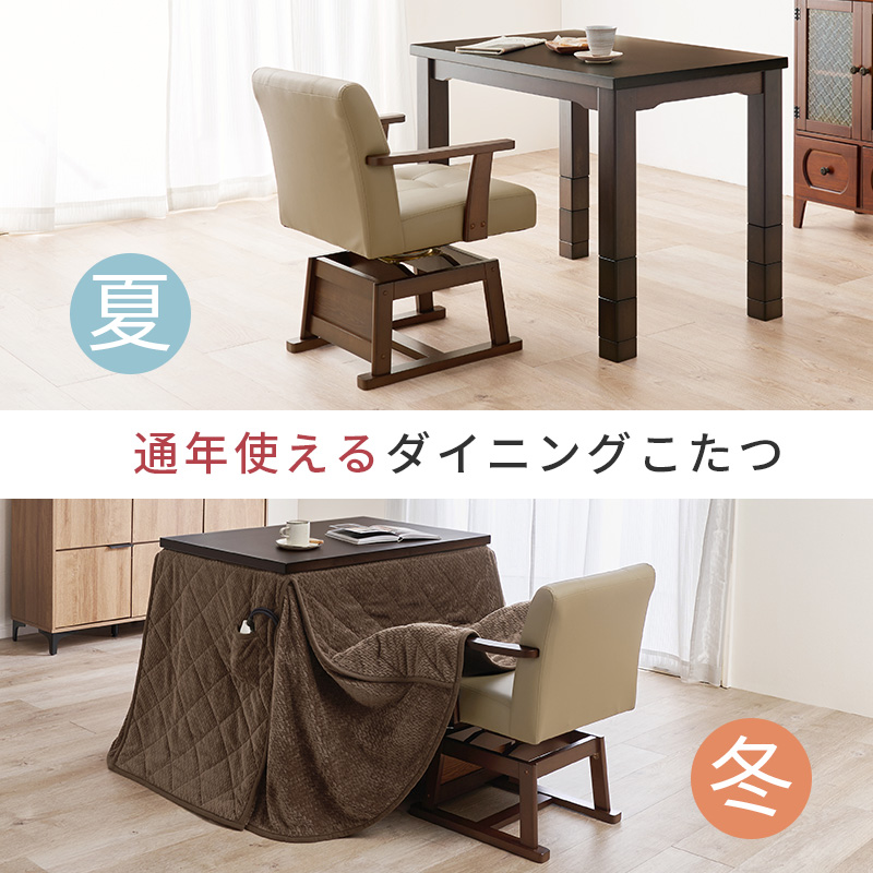 まとめて揃えられるダイニングこたつセット。ライフスタイルの変化に合わせて、テーブルの高さを6段階に変更できます。