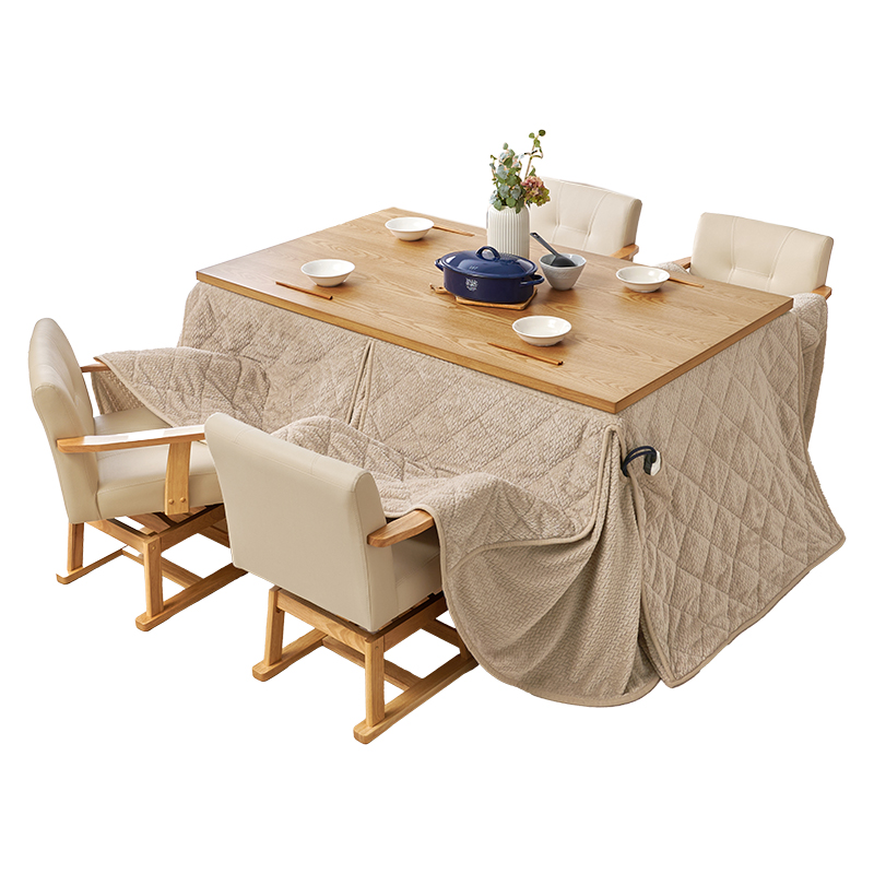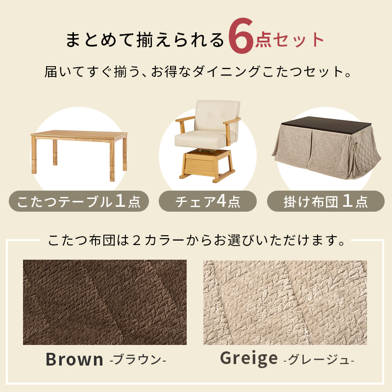 まとめて揃えられるダイニングこたつセット。ライフスタイルの変化に合わせて、テーブルの高さを6段階に変更できます。