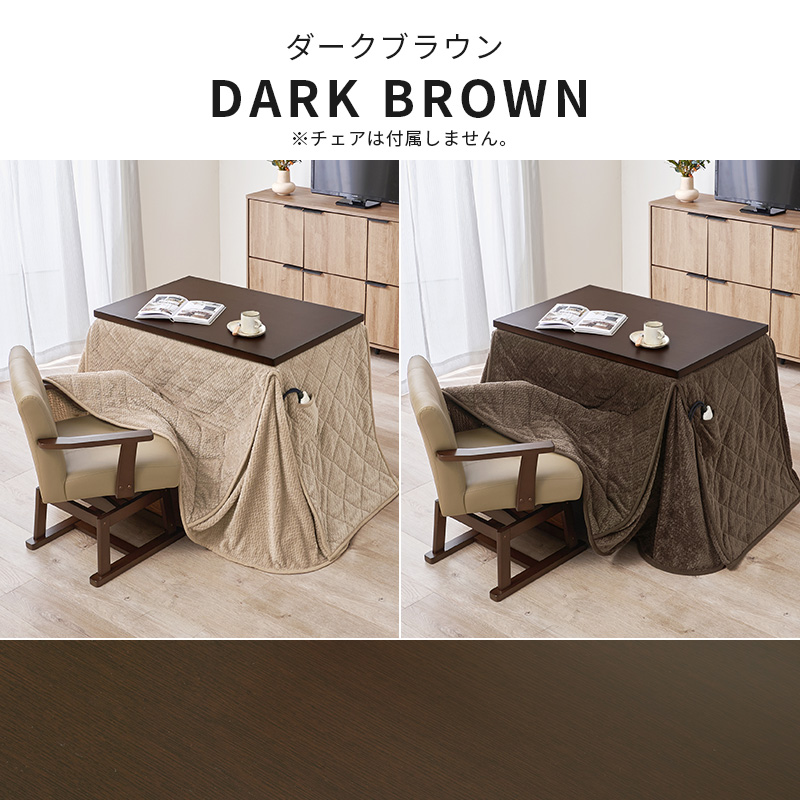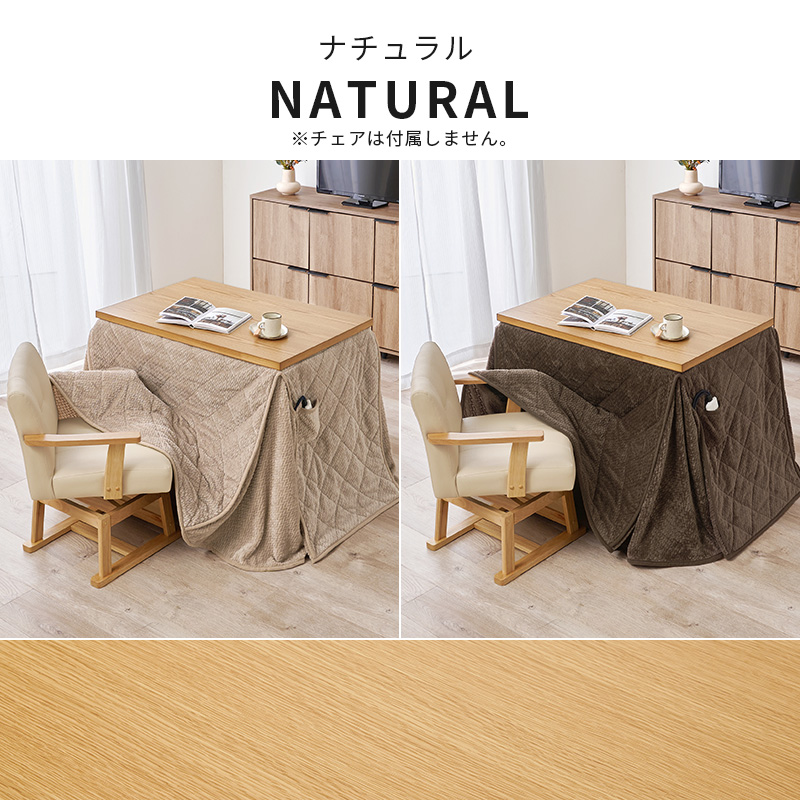 素材 | こたつ:<天板>天然木化粧繊維板・UV塗装<脚部>ラバーウッド、ヒーター:MHU-601E(D) 600Wハロゲンヒーター(手元コントローラー付)、ふとん:< 側地><中材>ポリエステル100% |