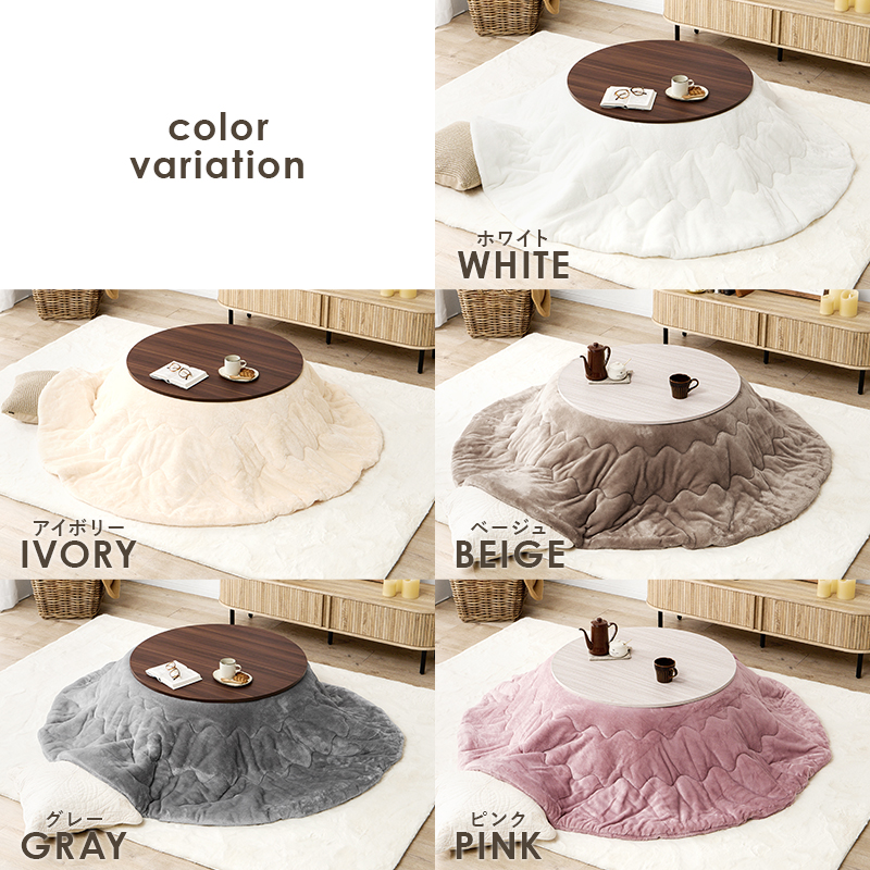 天板がリバーシブルでオールシーズン活躍するカジュアルコタツ。とろけるような肌触りのシンプルな掛け布団セット