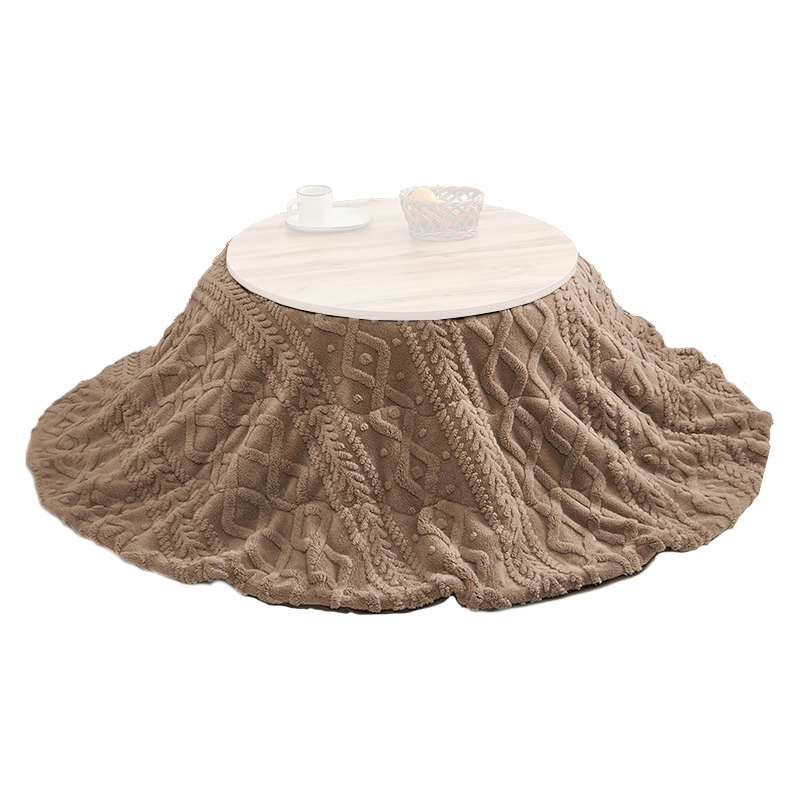 ケーブルニットのセーターのような立体的なデザインがおしゃれな薄掛け布団。もこもこしすぎない厚みでコンパクトに収納可能。洗濯可能