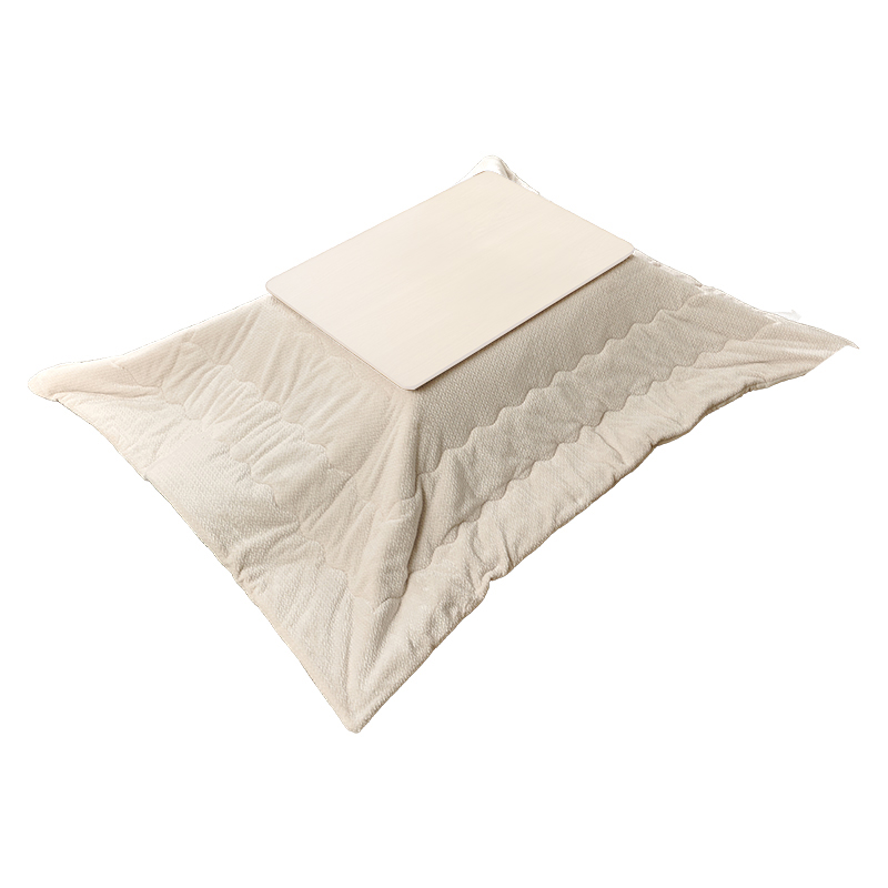 細かく編みこまれた立体感のあるニット柄が上品なこたつ布団。もこもこしすぎない厚みでコンパクトに収納可能。洗濯可能
