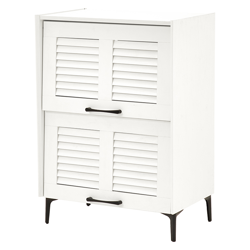 通気性の良いルーバー扉のシューズラック。可動棚付きで大きめの靴も収納でき、スッキリとしたスチール脚はリビングの収納としてもおしゃれに使えます。
