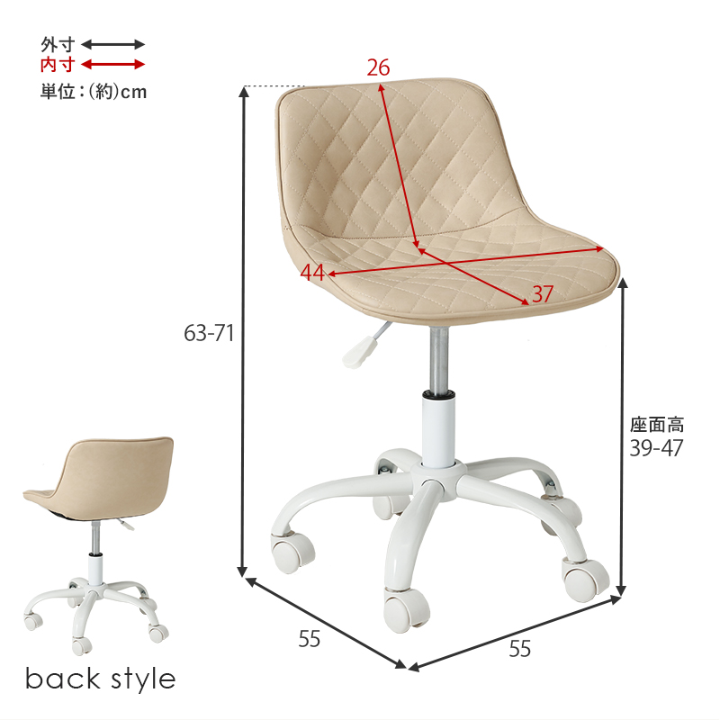サイズ | (約)幅55×奥行55×高さ63~71×座面高39~47cm |