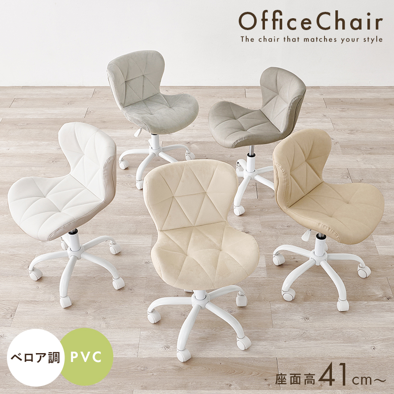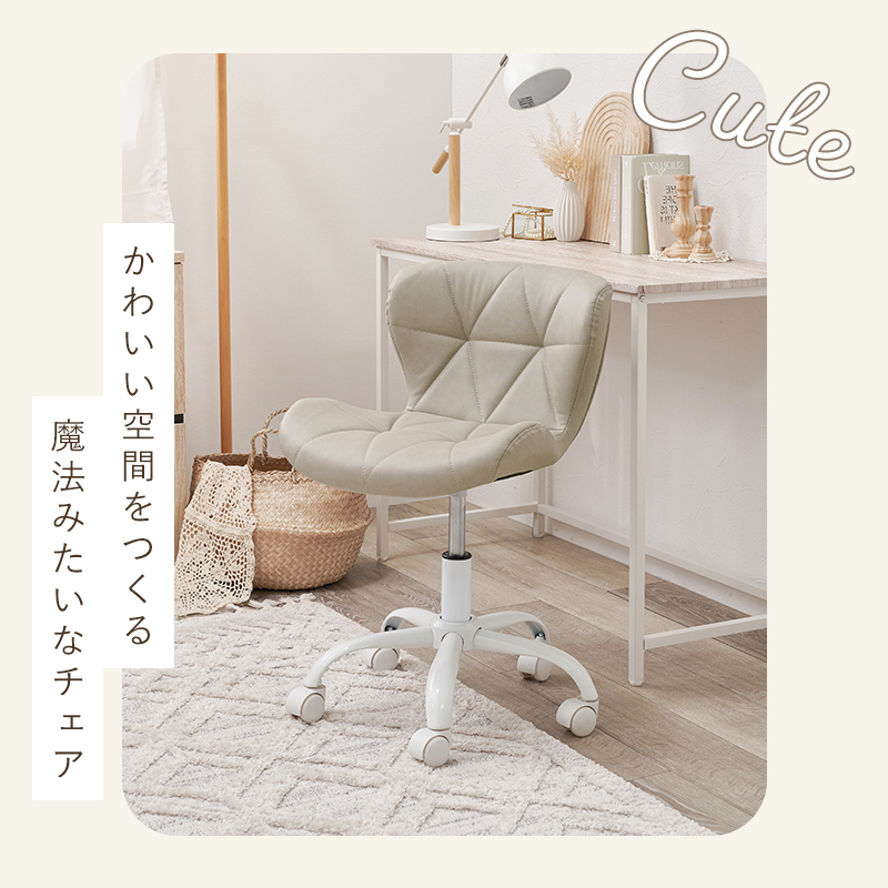 かわいいホワイトの足元に、遊び心のある三角模様の座面を合わせたチェア。背もたれや座面はやわらかくカーブしており身体の丸みに優しくフィットします。小柄な人にも嬉しい低め設計。