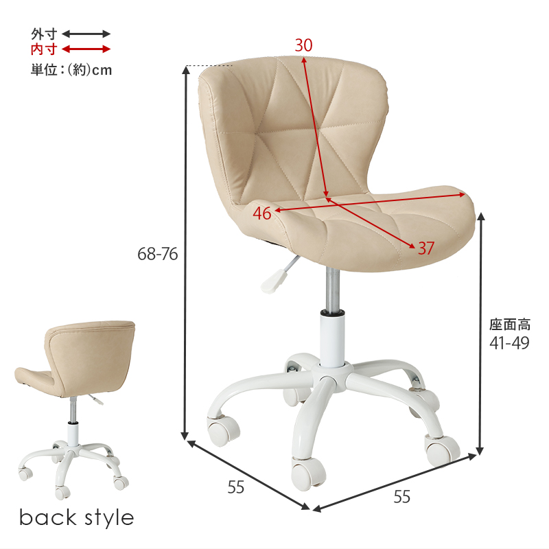 サイズ | (約)幅55×奥行55×高さ68~76×座面高41~49cm |