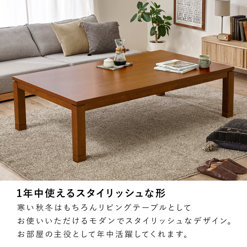 | 素材 | こたつ:<天板>天然木化粧繊維板(アカシア突板)<脚部>ラバーウッド、ヒーター:600W石英管ファンヒーター(手元コントローラー付)、ふとん:< 側地><中材>ポリエステル100% |