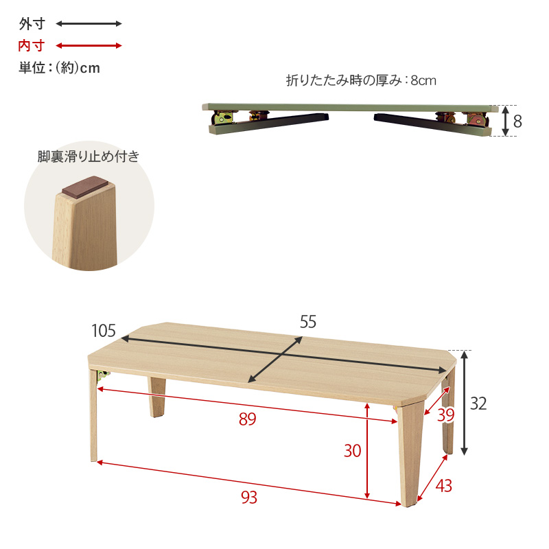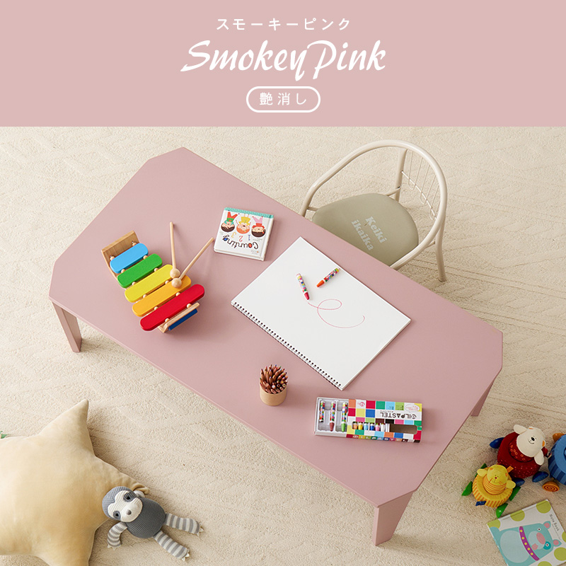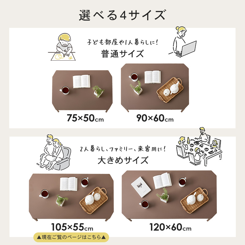 くすみカラーやモノトーンカラーが選べ、来客時やご家族でも使いやすい大きめサイズ。省スペース収納可能な折れ脚タイプ