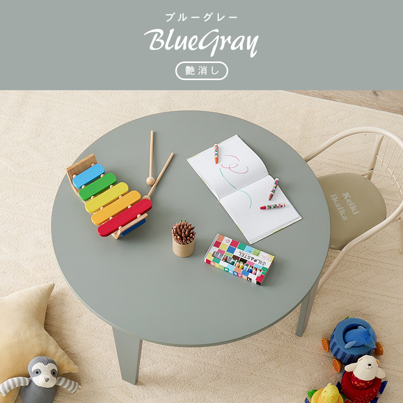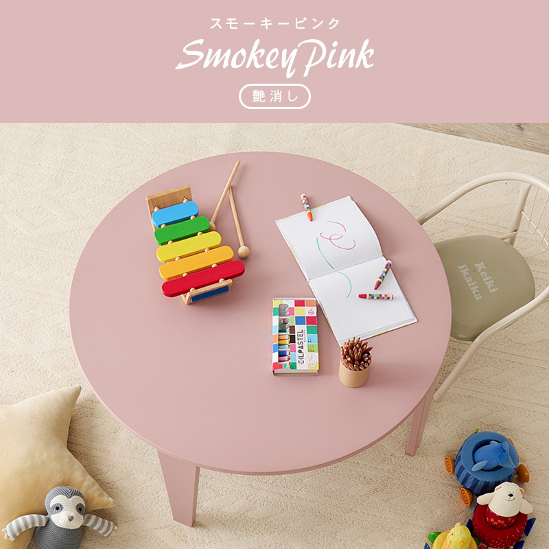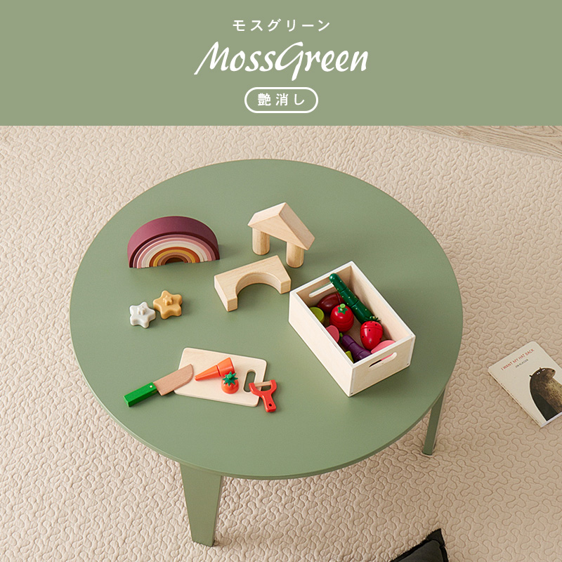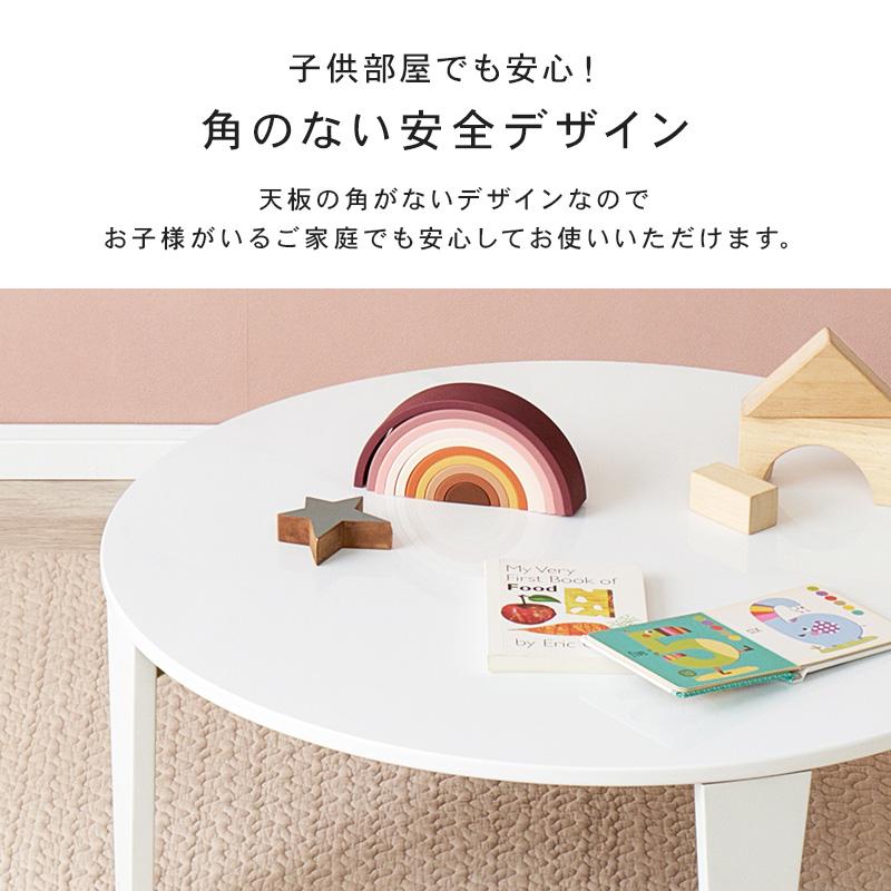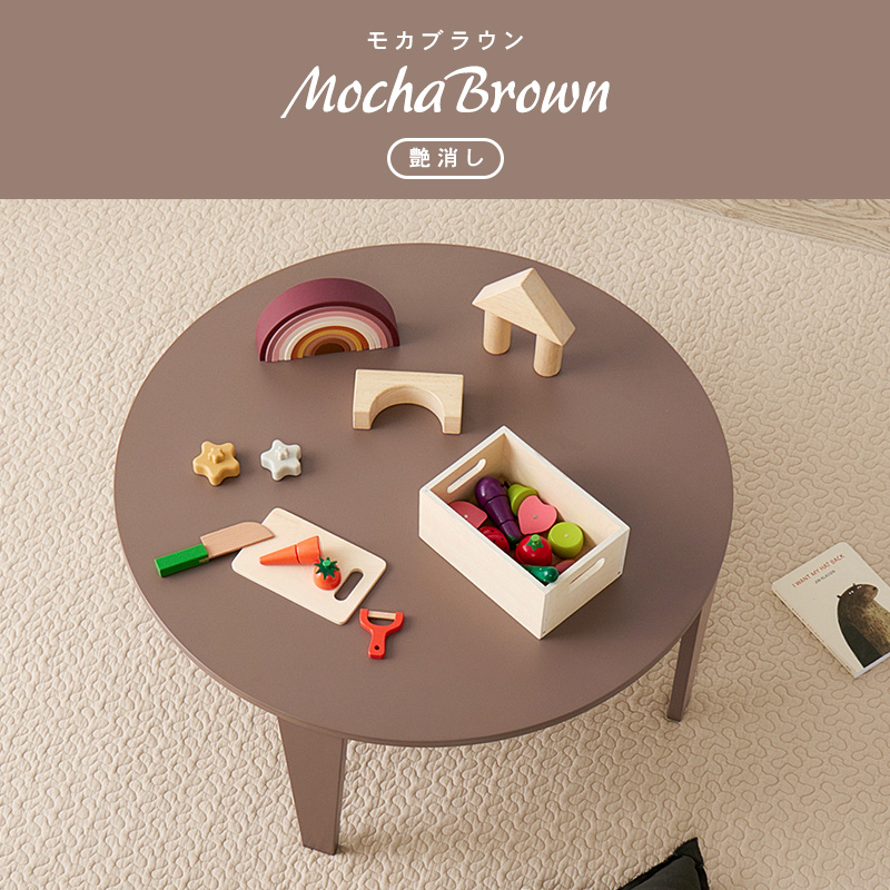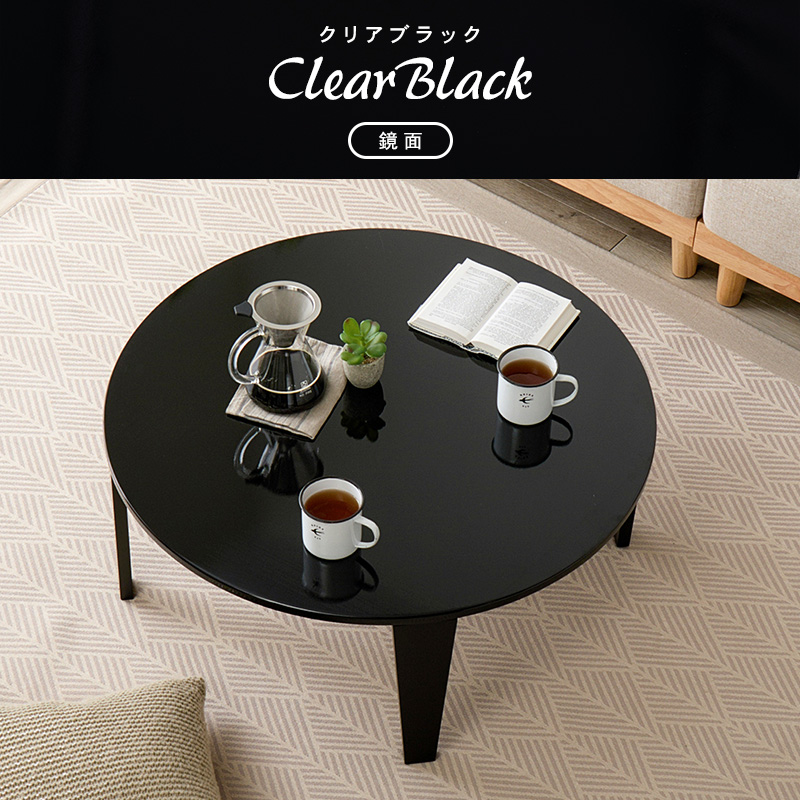 くすみカラーやモノトーンカラーが選べ、来客時や2~3人でゆったり使える大きめサイズの円形テーブル。省スペース収納可能な折れ脚タイプ