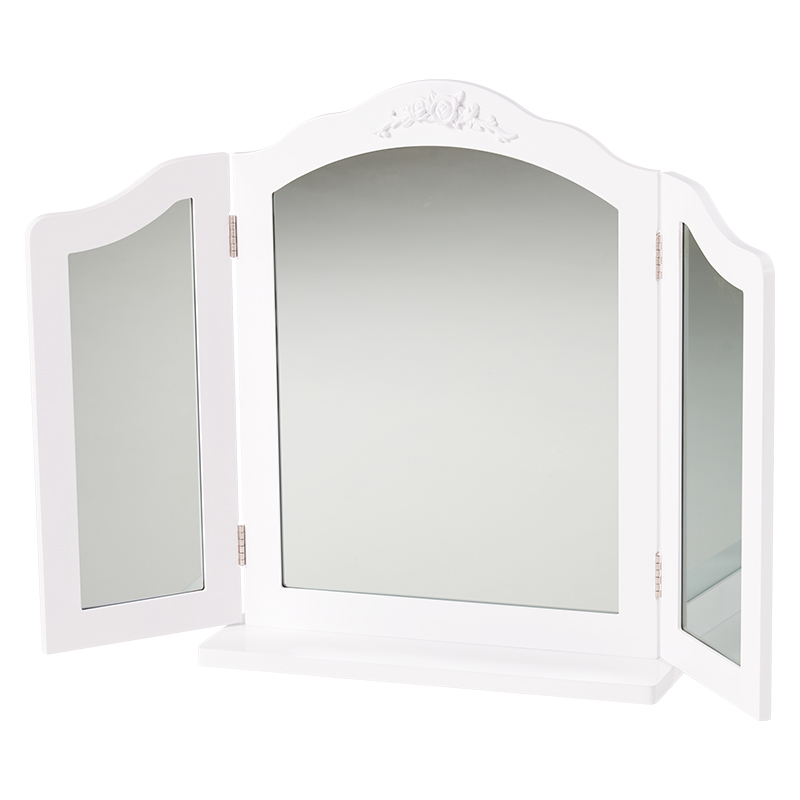 自宅のテーブルに置くだけで、本格的な三面鏡ドレッサーに。メイクやヘアセットに大活躍。