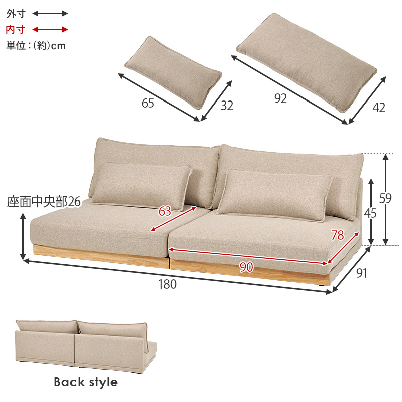 | サイズ | (約)幅180×奥行91×高さ59×座面高26cm |