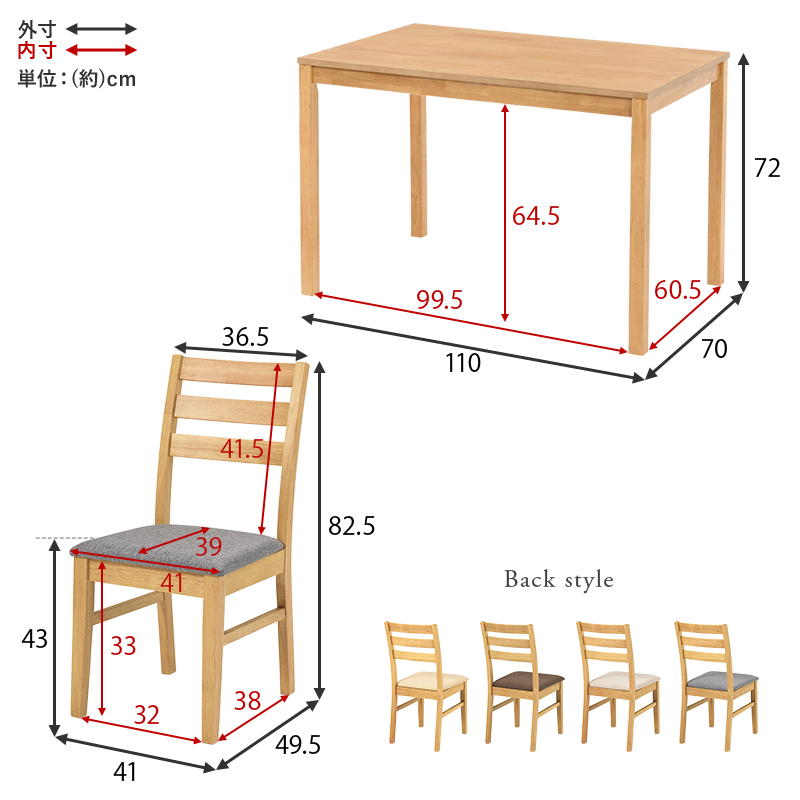 | サイズ | テーブル:(約)幅110×奥行70×高さ72cm、チェア:(約)幅41×奥行49.5×高さ82.5×座面高43cm |