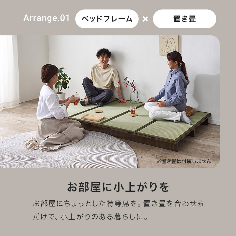 お部屋が広く感じるロースタイル。マットレスのサイズやクッション、置き畳と組み合わせれば、ベッドとしてもくつろぎスペースとしても置き方次第で自分らしい居場所が作れます。