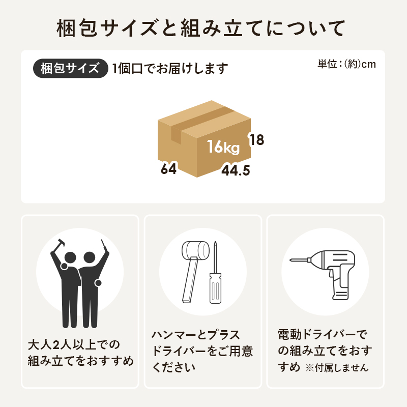 | 素材 | 主材:プリント紙化粧パーティクルボード |