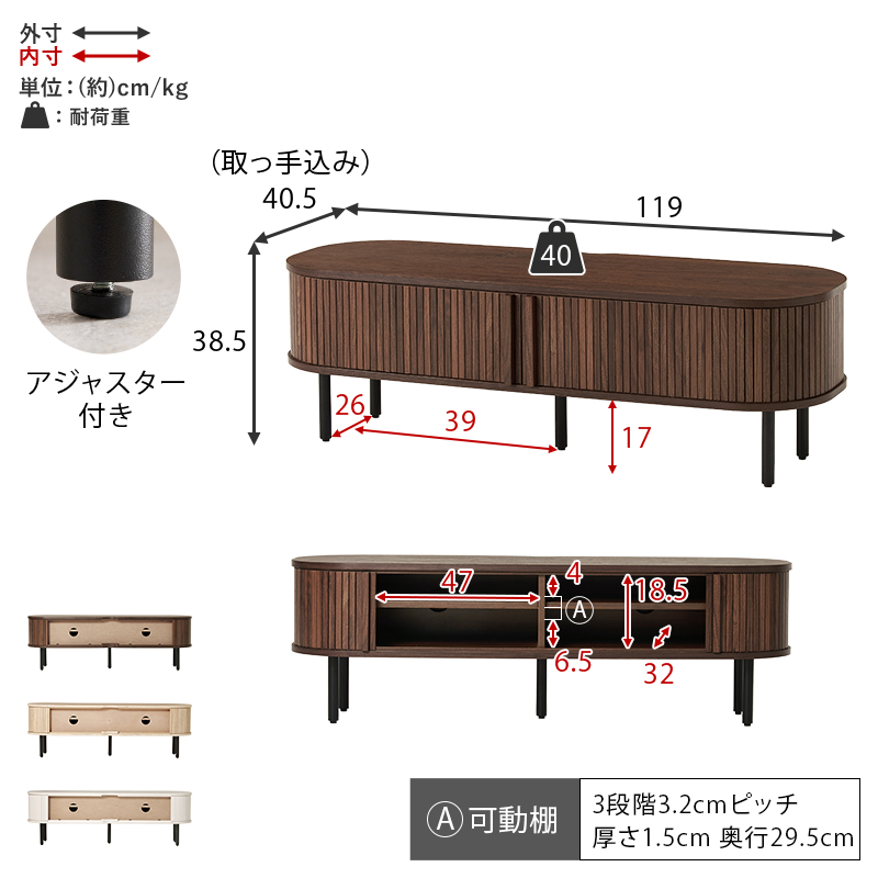 | サイズ | (約)幅119×奥行40.5×高さ38.5cm |