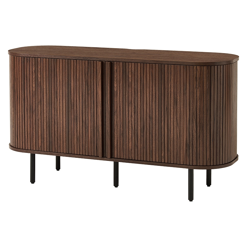 縦のラインとサイドの曲線が美しいタンブール扉のハイタイプテレビ台。扉の開閉に場所を取らず、すっきりとした脚高デザインもポイントです。サイドボード、キャビネット収納としても使用可能