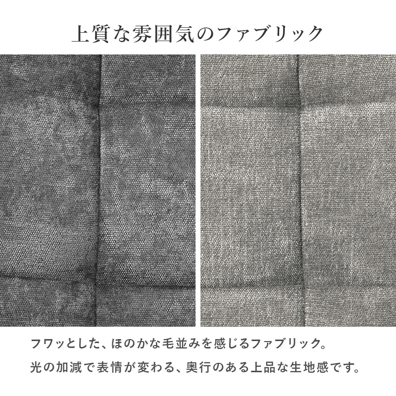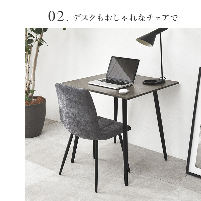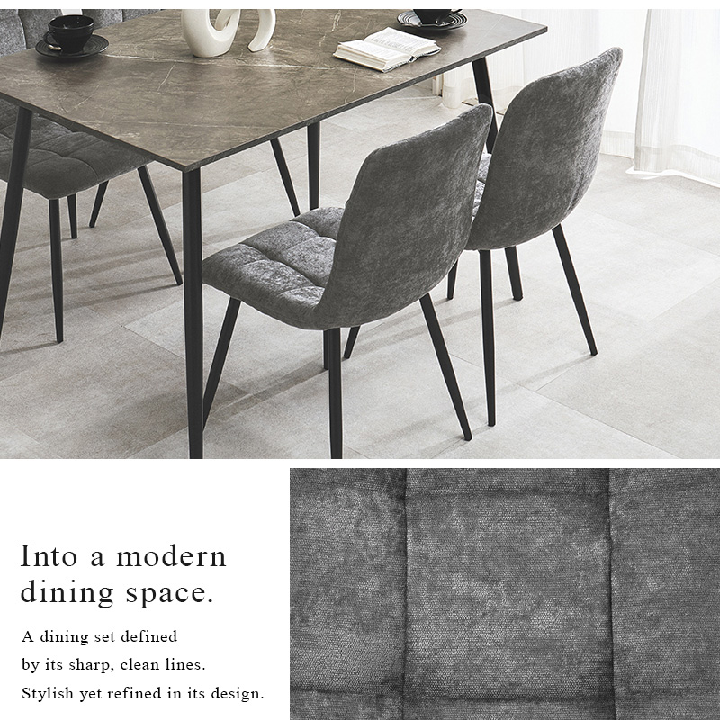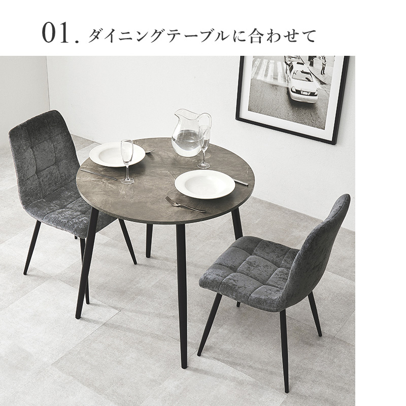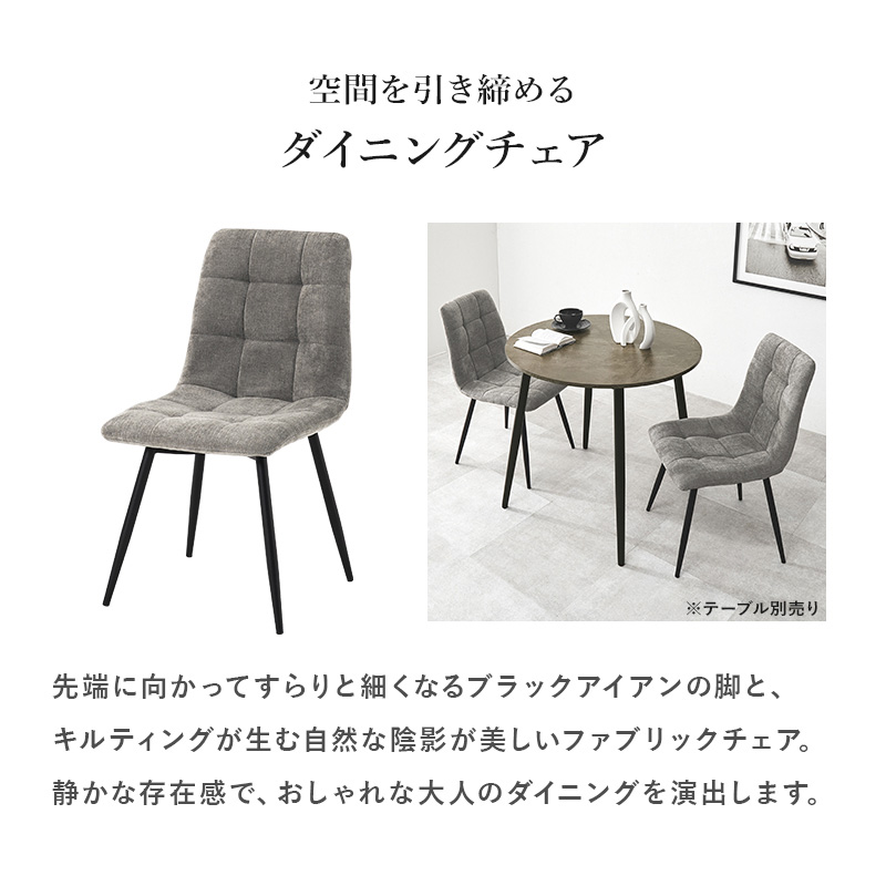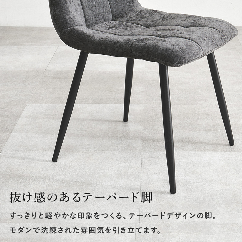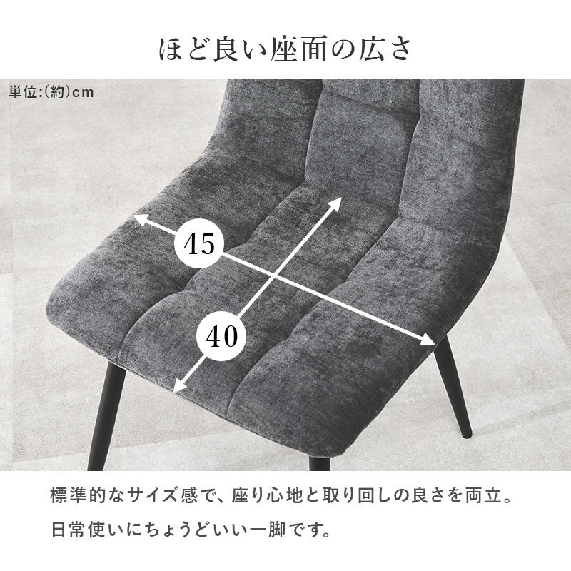 ほのかな毛並みを感じる生地を使用したダイニングチェア。硬めのクッションが腰と背中を程よく支える快適な座り心地。
