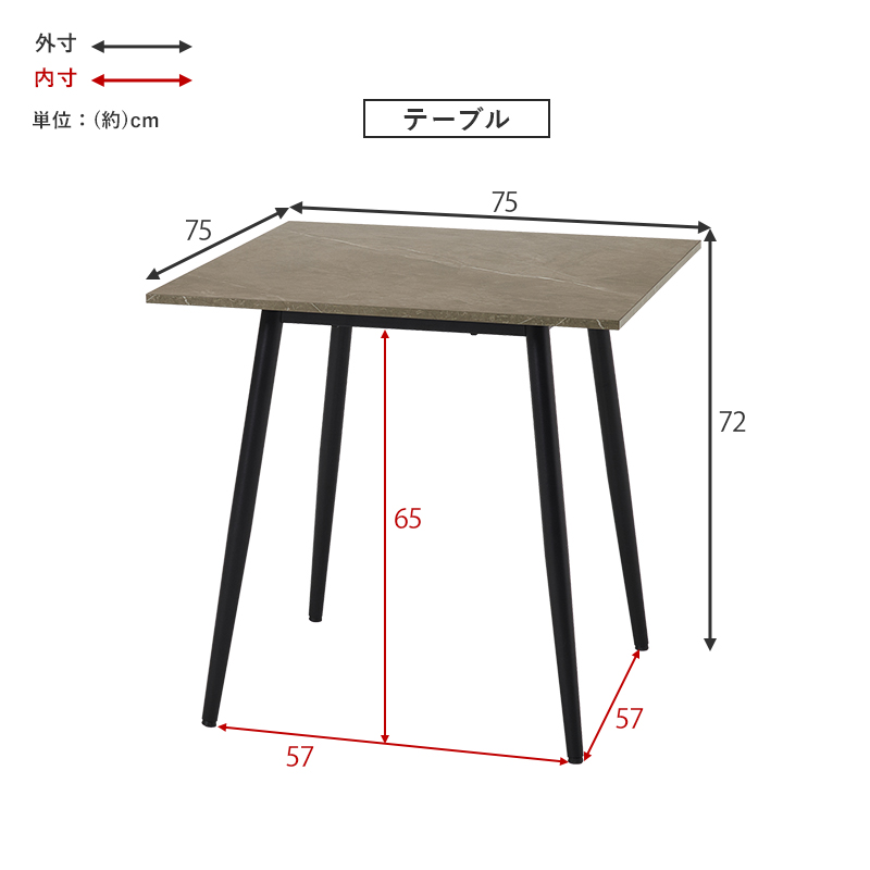 | サイズ | テーブル:(約)幅75×奥行75×高さ72cm、チェア:(約)幅45×奥行54×高さ80×座面高41cm |