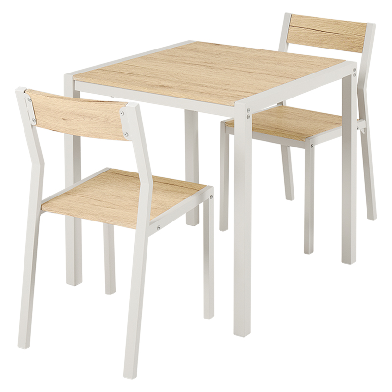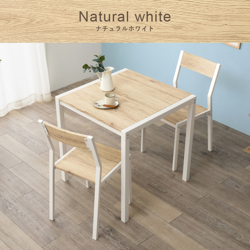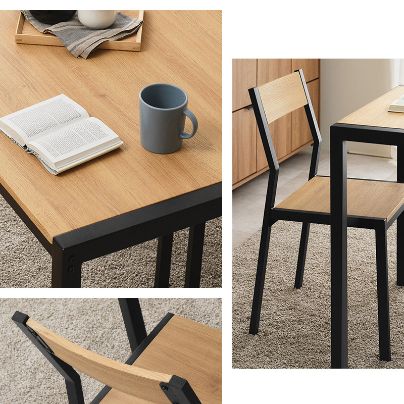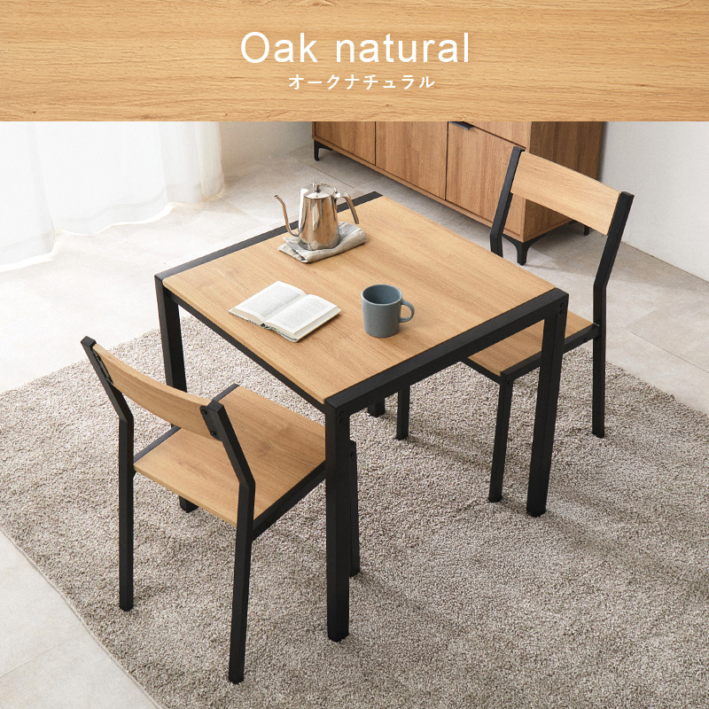 温かみのある木目調天板とアイアンフレームを組み合わせたダイニング3点セット。シンプルなデザインで、1~2人暮らしにちょうどいいコンパクトなサイズ感。