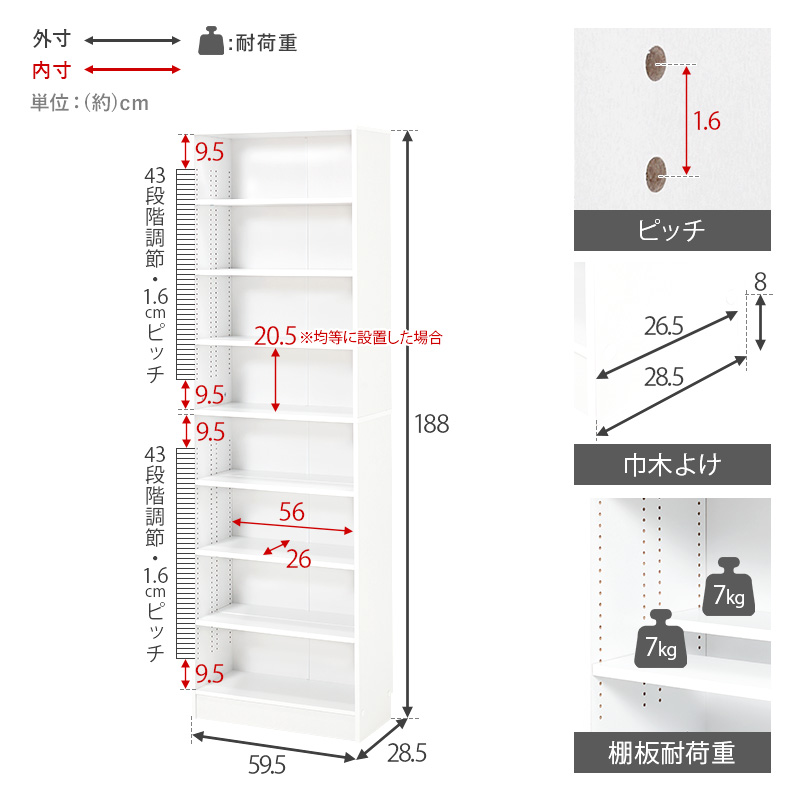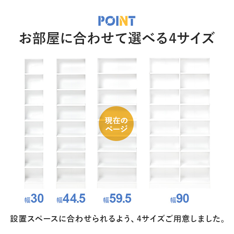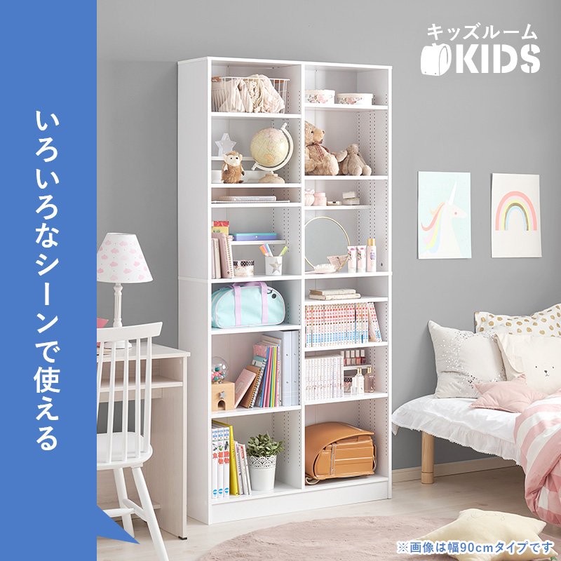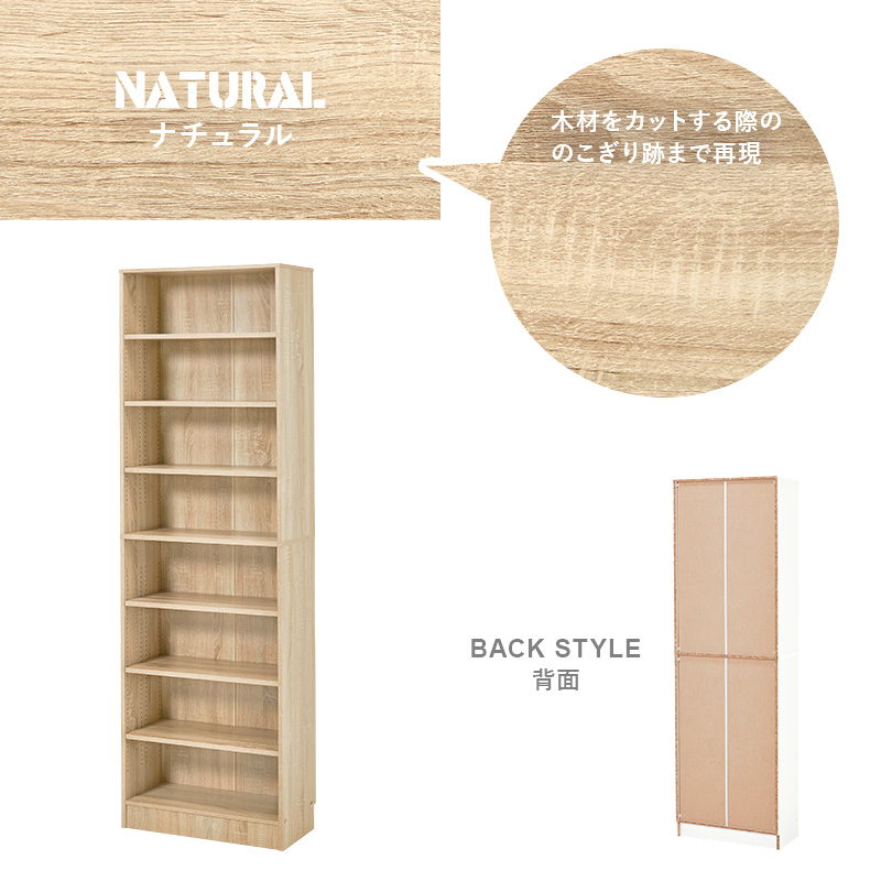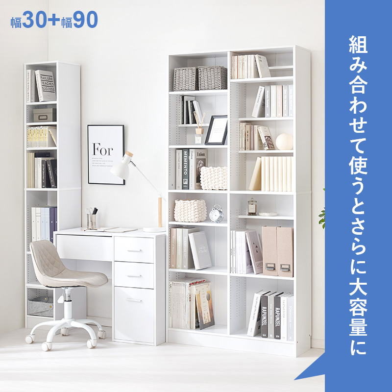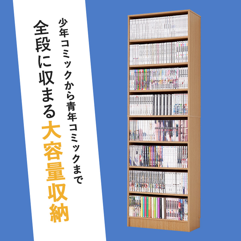 前後2列別々に棚板高さが変えられ、大容量収納できるマンガ好きの為の本棚。
