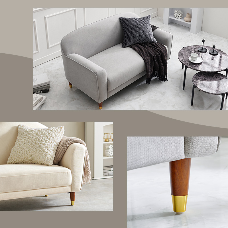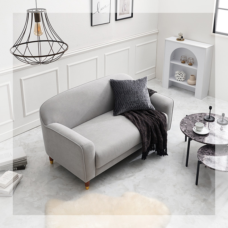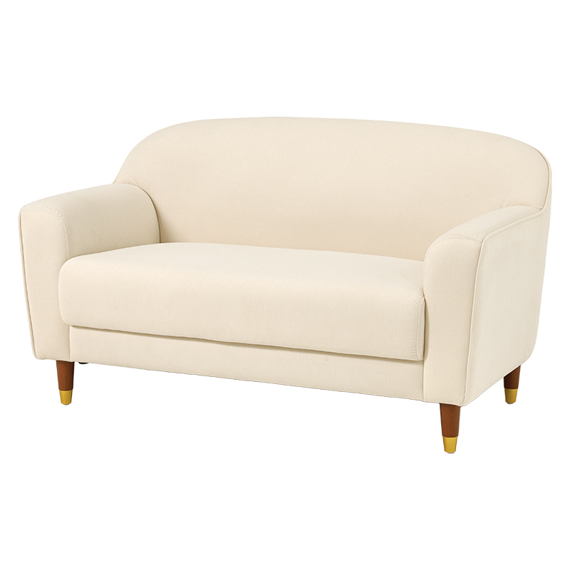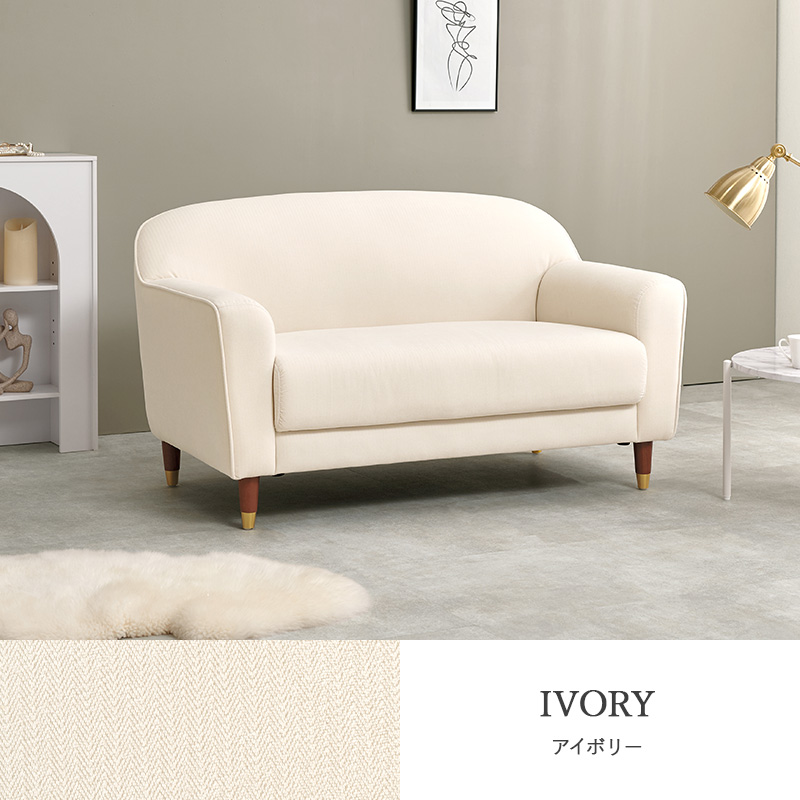 丸みのあるやさしいフォルムとゴールドをあしらった脚がエレガントさを演出。大人かわいい2人掛けのコンパクトソファ。ロー/ハイ兼用