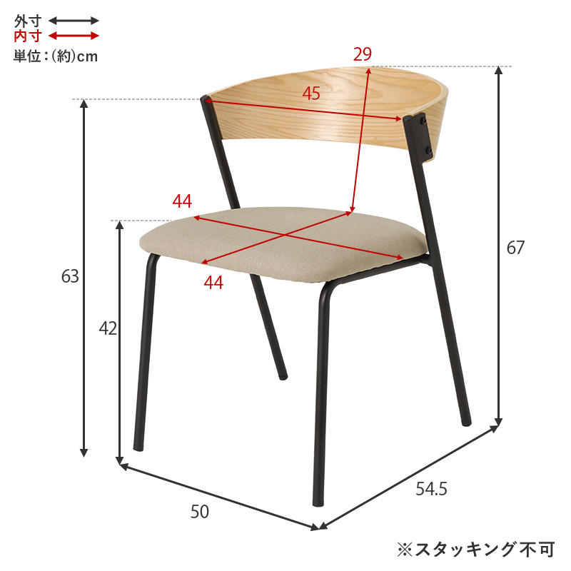 | サイズ | (約)幅50×奥行54.5×高さ67×座面高42cm |