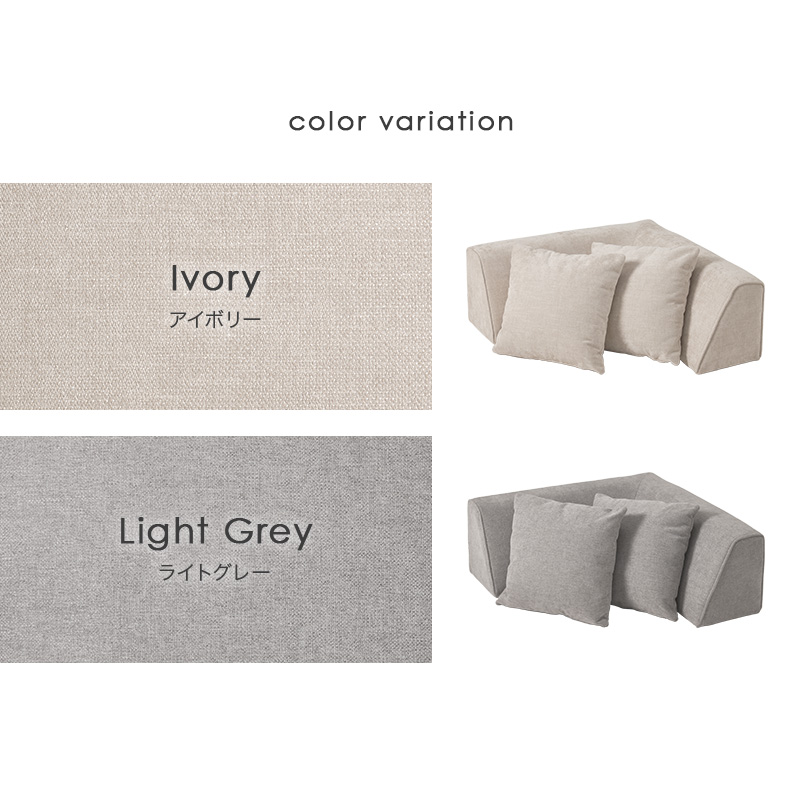 アイランドソファのL字背もたれ単品です。底面に滑り止めを施しているので設置後はズレにくい仕様です。クッション2個付き