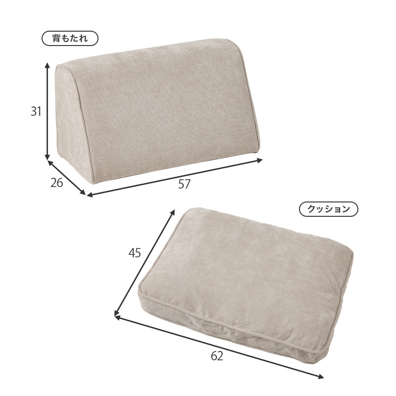 | サイズ | 座面:(約)幅170×奥行94×高さ38/24cm、背もたれ:(約)幅57×奥行26×高さ31cm、クッション:(約)62×45cm |
