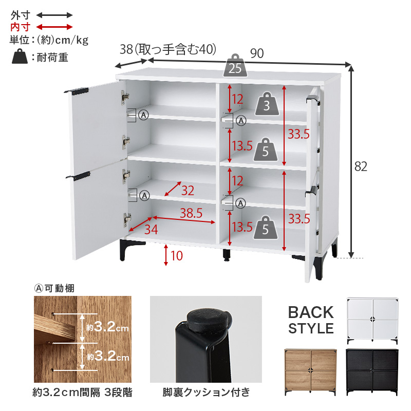 | 内寸及び補足説明 | ■組立式 ■可動棚4枚 |